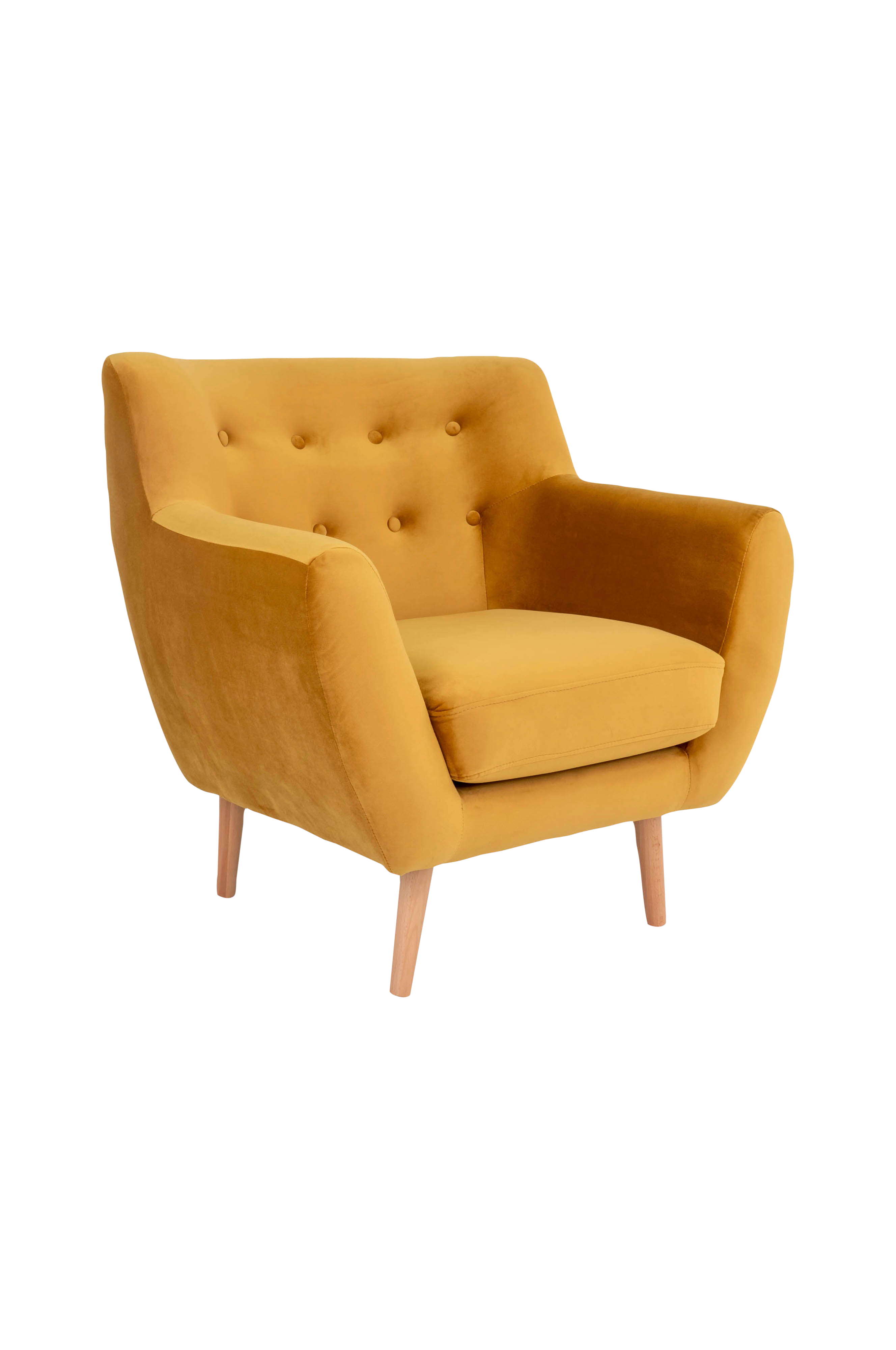 Stol med armlæn i velour med ben af træ. Usamlet. 76 x 81 x 79 cm. 18,2 kg