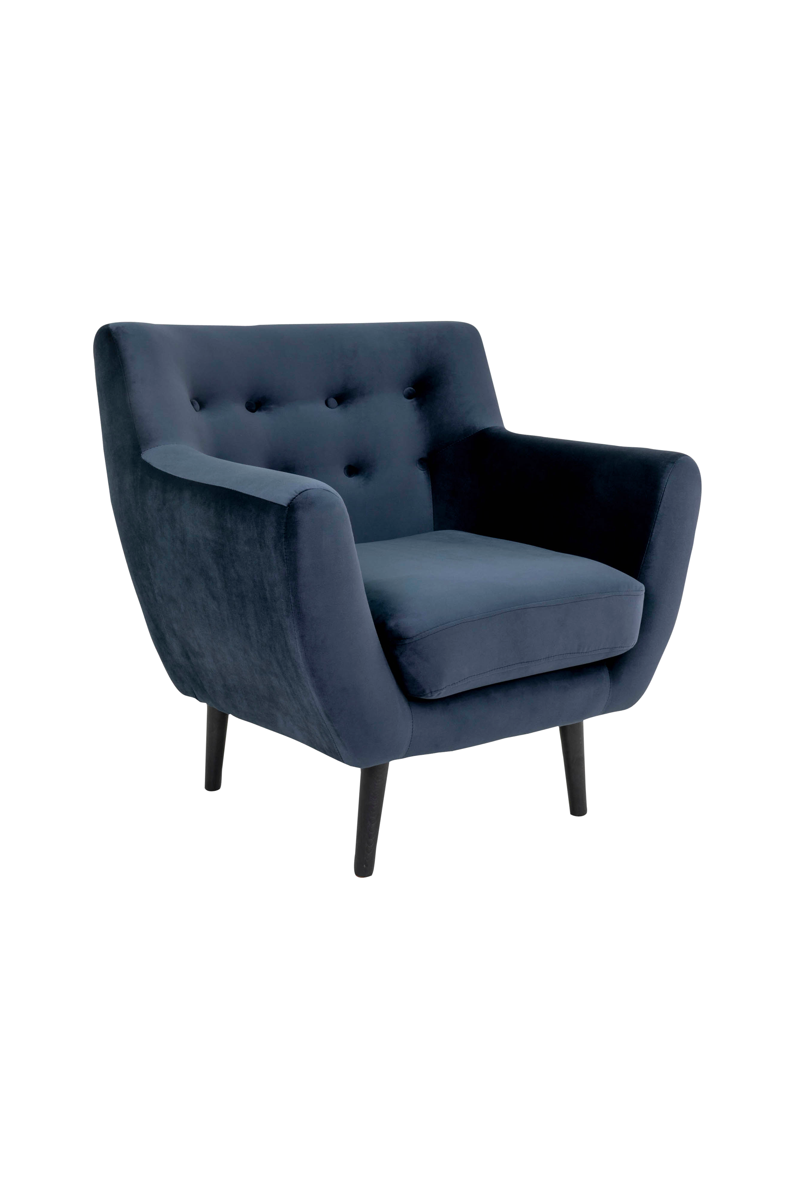 Stol med armlæn i velour med ben af træ. Usamlet. 76 x 81 x 79 cm. 18,2 kg