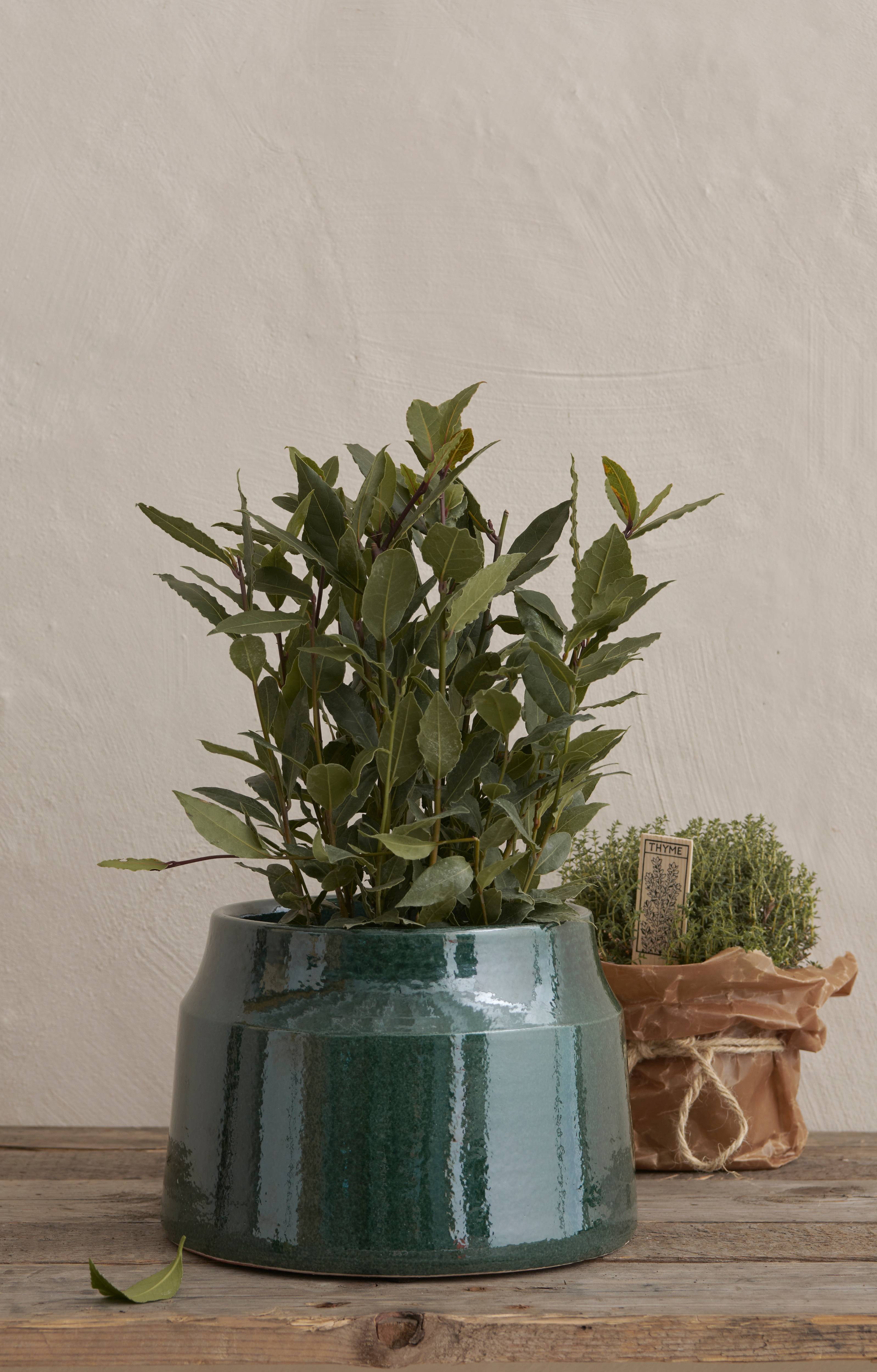 Den er et klassisk krydderi med aromatiske, store, blanke, læderagtige blade. Kan dyrkes som buske eller lille opstammet træ. Krukkestørrelse 14 cm. Højde 35 cm. Duft: Ingen
