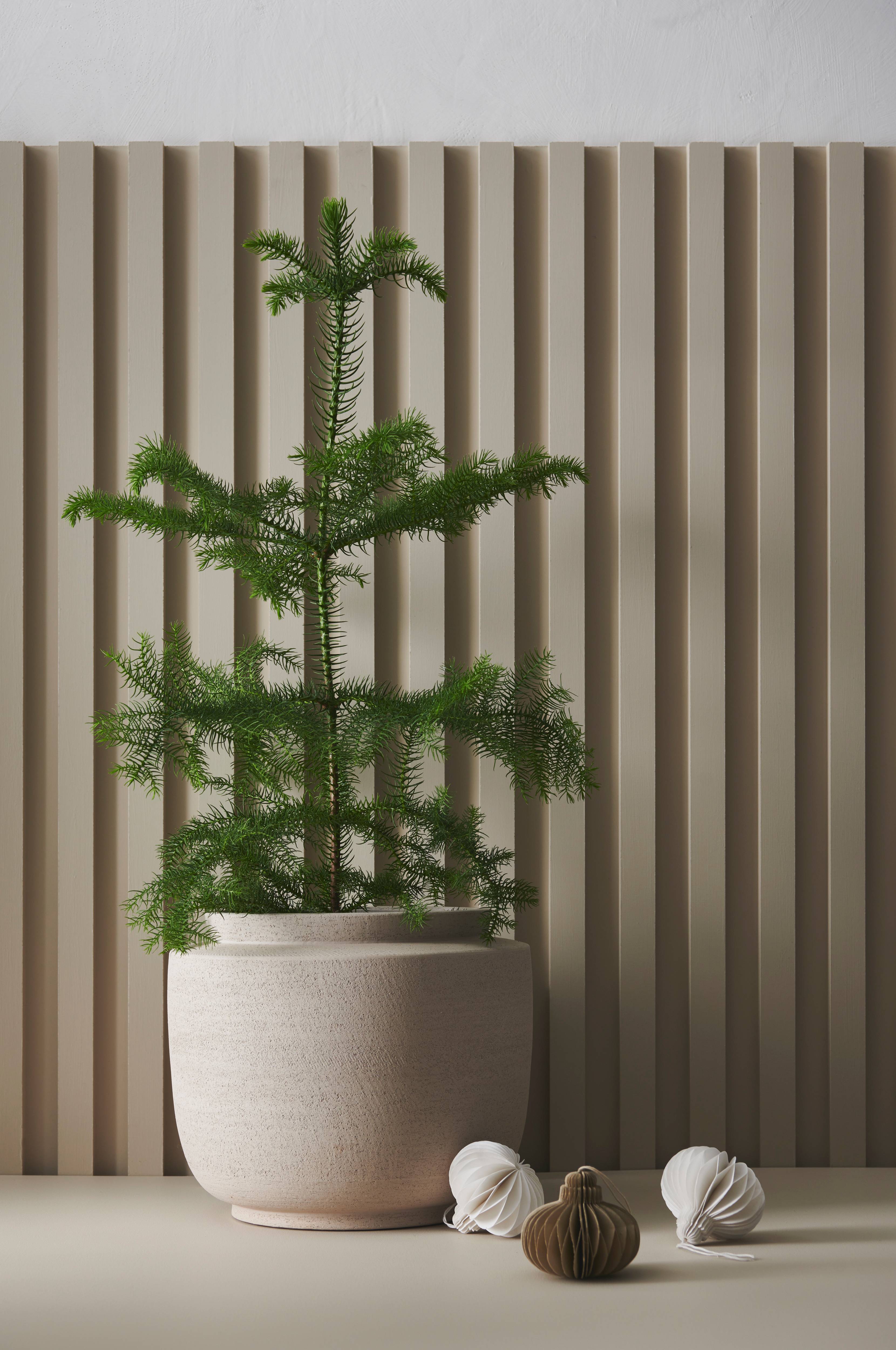 Trendy plante som er blevet meget populær. Bløde kogler som bliver siddende hele året. Stuegranen er robust og kan blive meget gammel. Undgå direkte sollys og alt for stærk varme. Krukkestørrelse 14 cm. Duftfri.