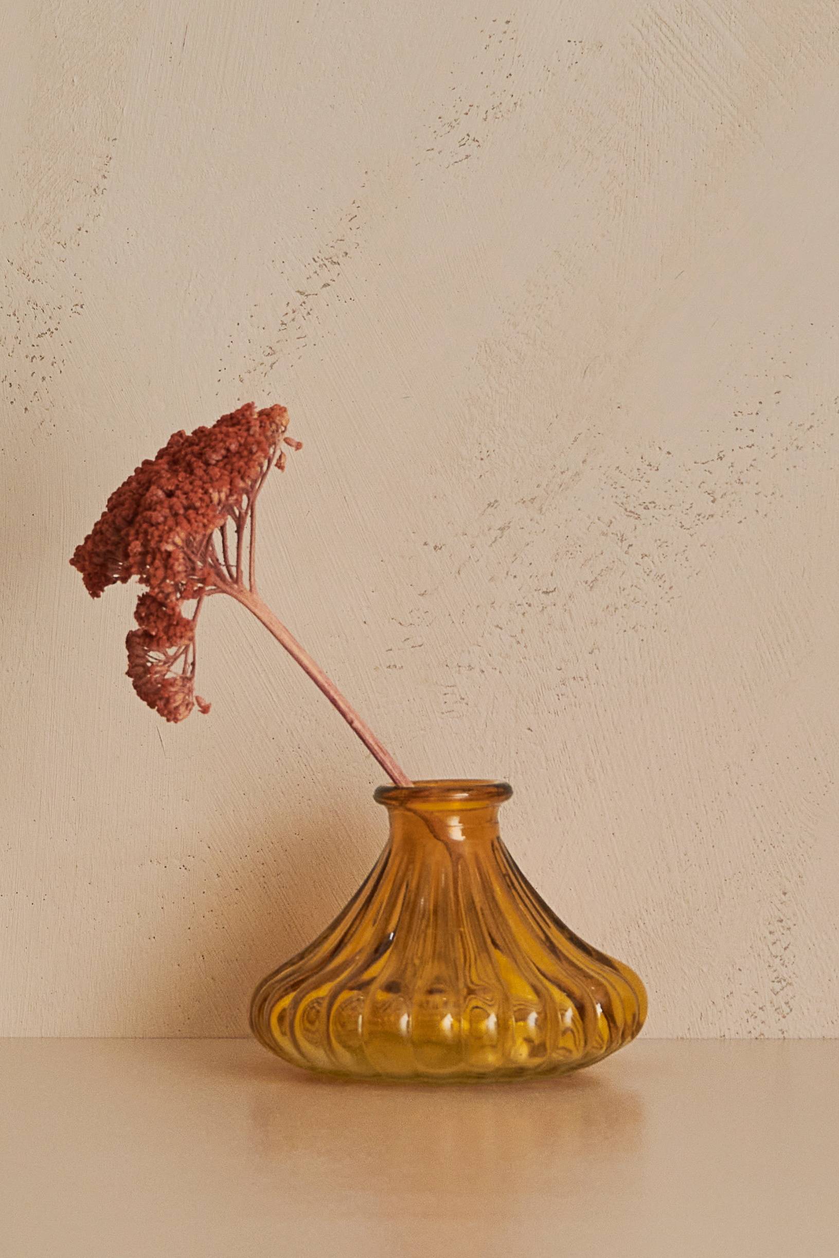 Sød lille vase i brun tone. Perfekt til små blomster eller strå. Højde 7 cm, diameter 10 cm