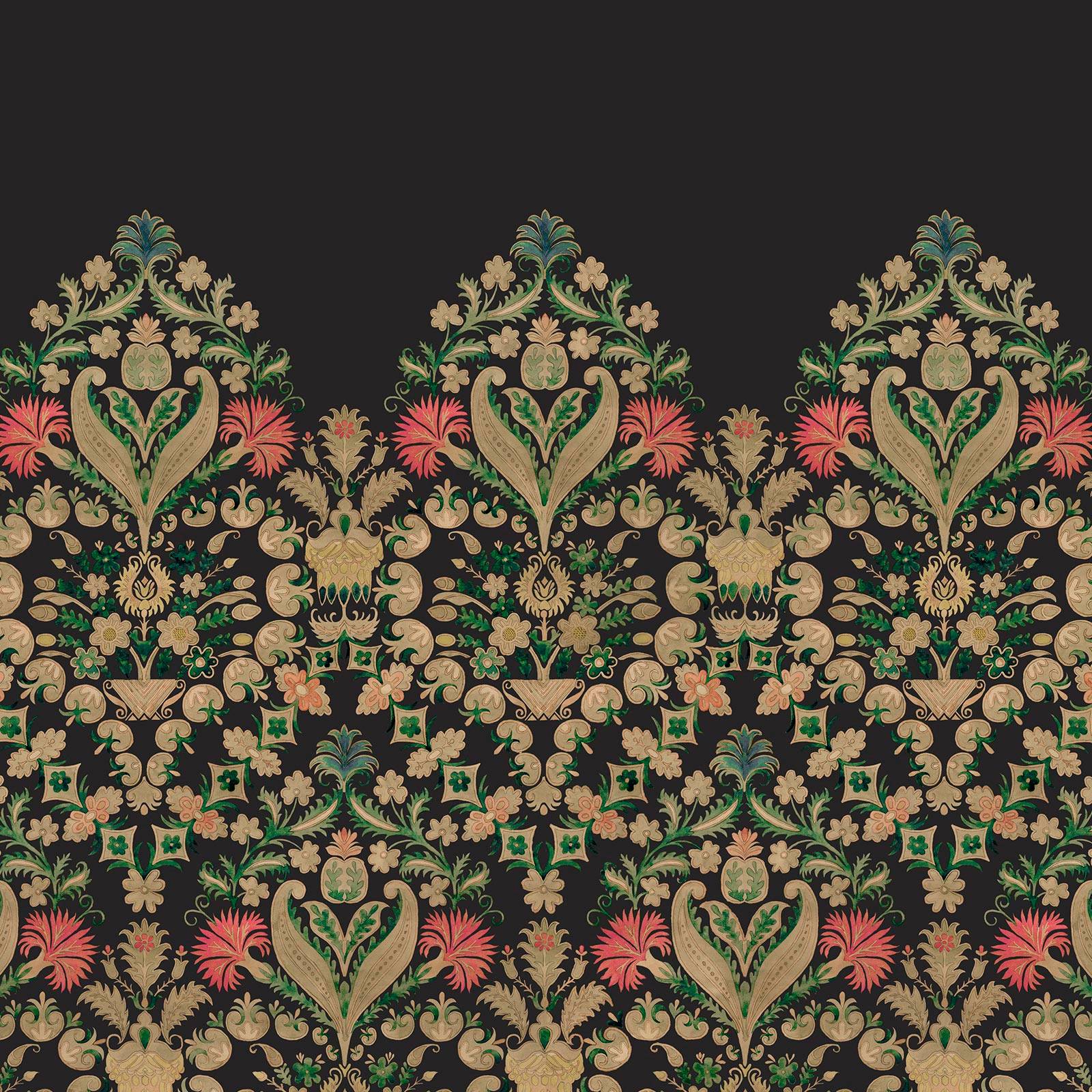 ARTIO har fået sit navn efter den Keltiske gudinde for vilde dyr, forvandling og overflod, og er baseret på et damaskmønster fra den anerkendte silkefabrik Gainsboroughs arkiv. Vi har beholdt de blide toner fra originalmotivet, og øget skalaen noget for at hylde det smukke og intrikate blomstermønster. Det smukke motiv er malet på en drämmeagtig baggrund og placeret i slutningen af rullen for at skabe en distinkt zigzag-effekt. B 180 cm x H 300 cm