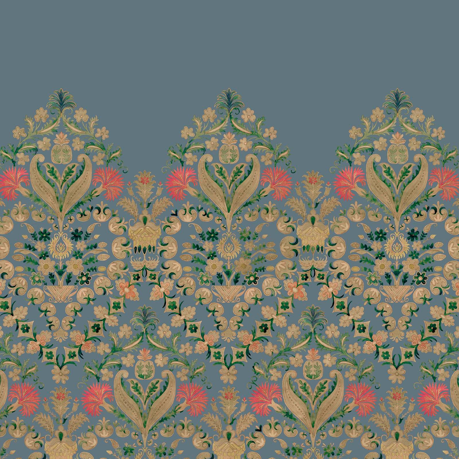 ARTIO har fået sit navn efter den Keltiske gudinde for vilde dyr, forvandling og overflod, og er baseret på et damaskmønster fra den anerkendte silkefabrik Gainsboroughs arkiv. Vi har beholdt de blide toner fra originalmotivet, og øget skalaen noget for at hylde det smukke og intrikate blomstermønster. Det smukke motiv er malet på en drämmeagtig baggrund og placeret i slutningen af rullen for at skabe en distinkt zigzag-effekt. B 180 cm x H 300 cm