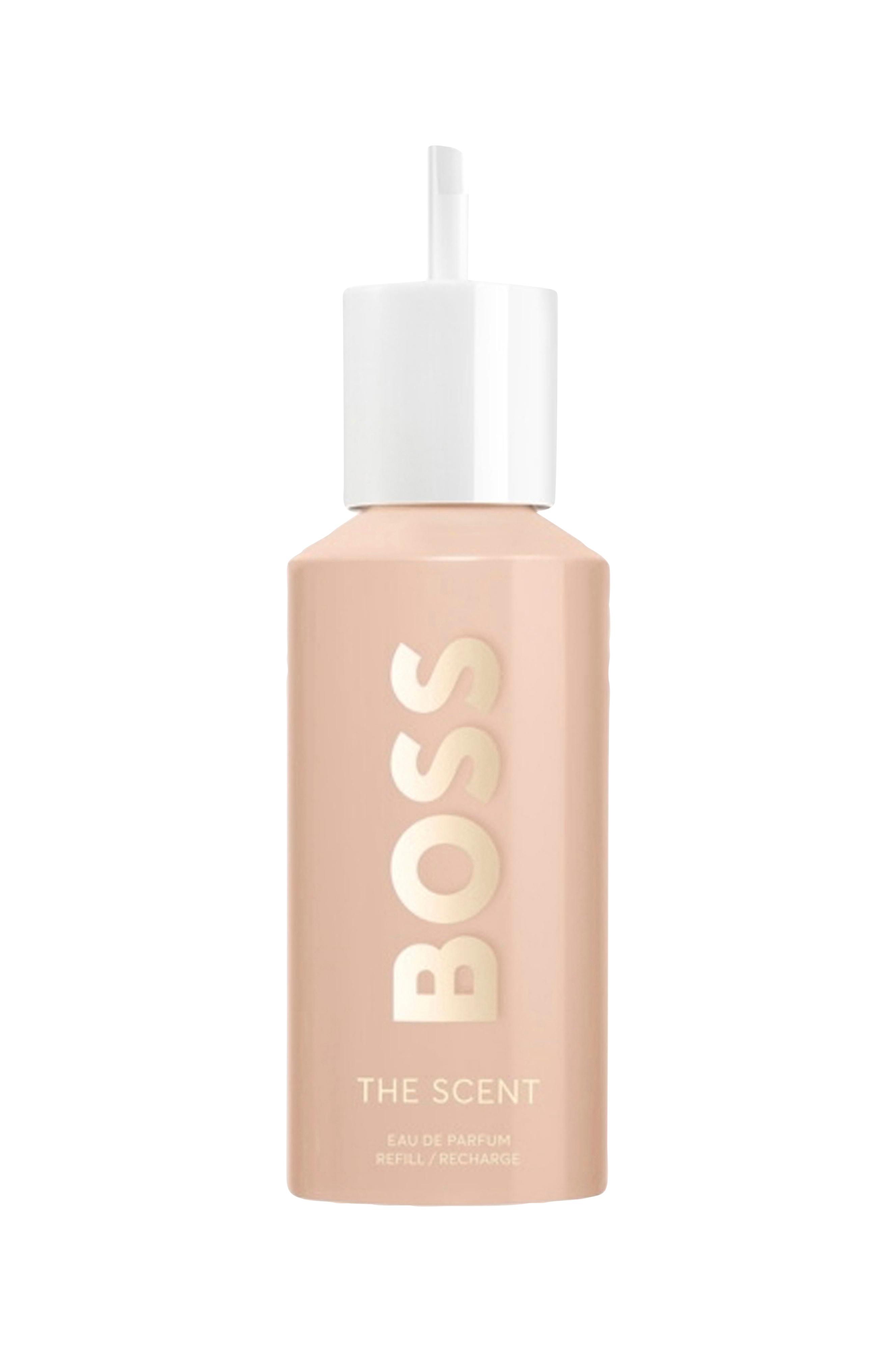 Boss The Scent Eau de Parfum for Her præsenteres i en krystallinsk glasflakon med det ikoniske Boss -logo og en isgylden Double-B-monogramhætte - et design, der afspejler duftens udtryksfulde karakter og sensuelle elegance.