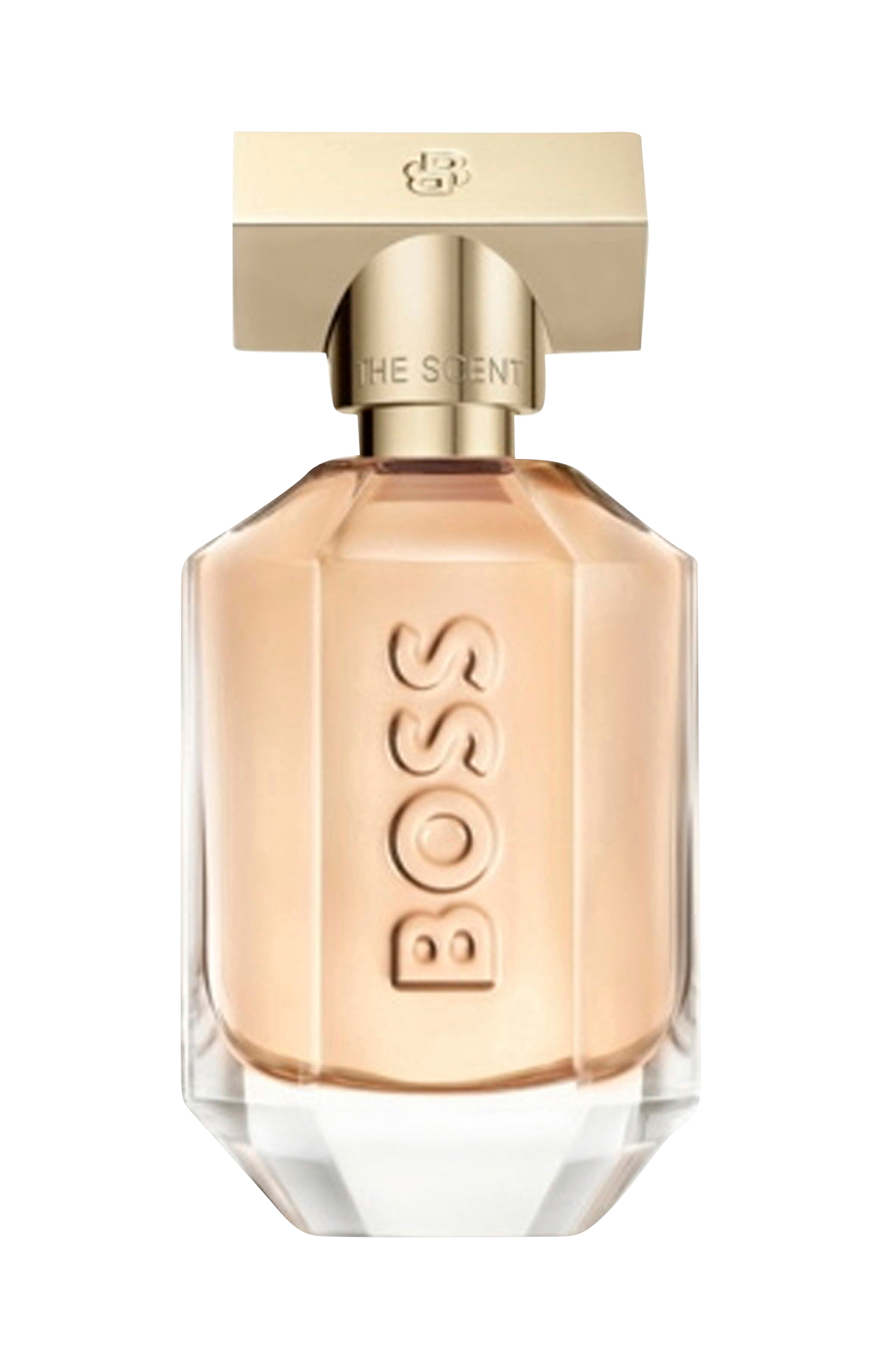 Boss The Scent Eau de Parfum for Her præsenteres i en krystallinsk glasflakon med det ikoniske Boss -logo og en isgylden Double-B-monogramhætte - et design, der afspejler duftens udtryksfulde karakter og sensuelle elegance.