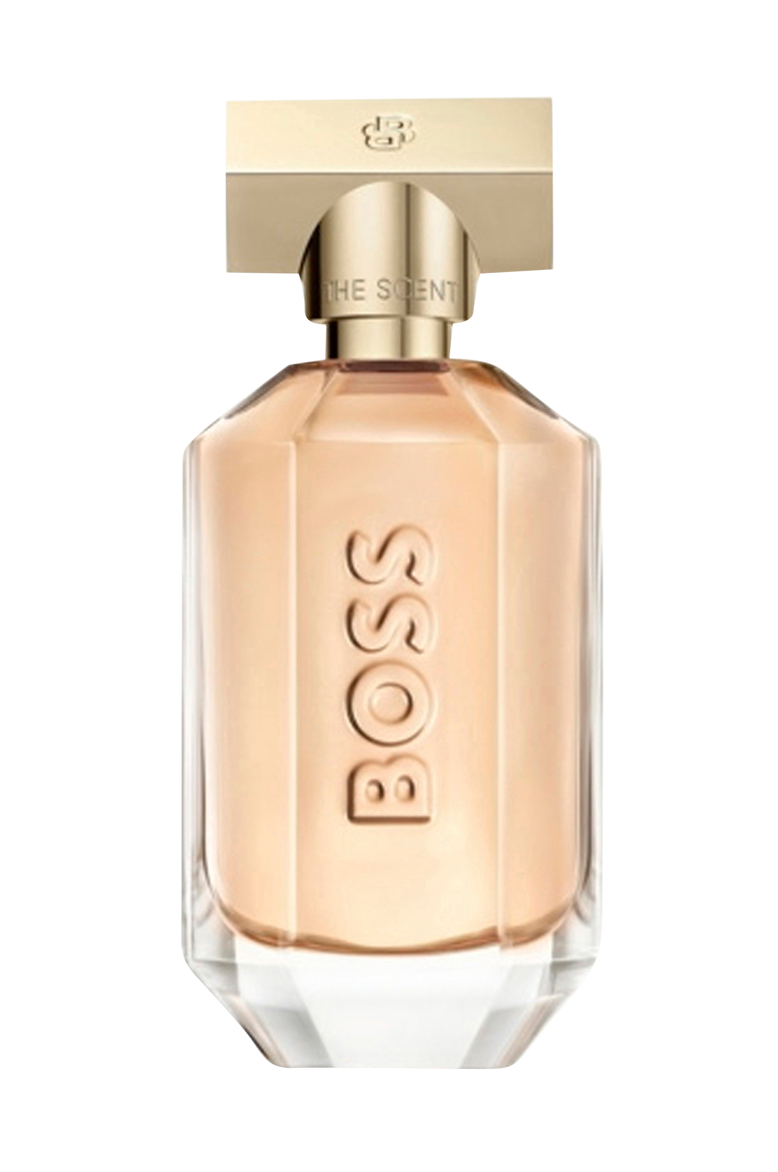 Boss The Scent Eau de Parfum for Her præsenteres i en krystallinsk glasflakon med det ikoniske Boss -logo og en isgylden Double-B-monogramhætte - et design, der afspejler duftens udtryksfulde karakter og sensuelle elegance.