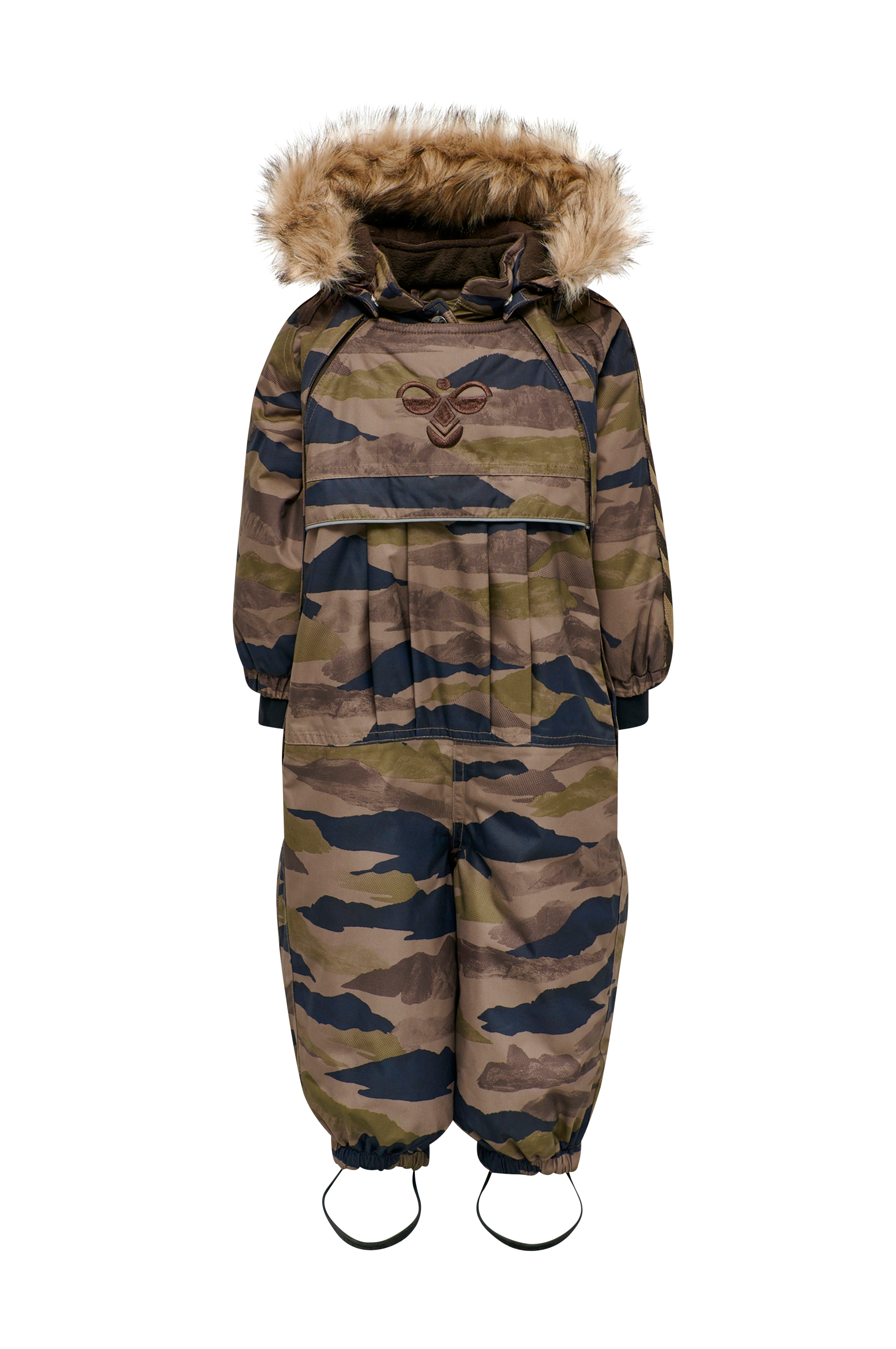 Aftagelig hætte med aftagelig kant i kunstpels. Høj krave med blød, børstet jersey på indersiden. Lukning med to lynlåse. Elastik i taljen bagpå. Ærmekanten har elastik og ribkant i stretchjersey. Benkanten har elastik og elastiske, aftagelige fodstropper. Refleksdetaljer.