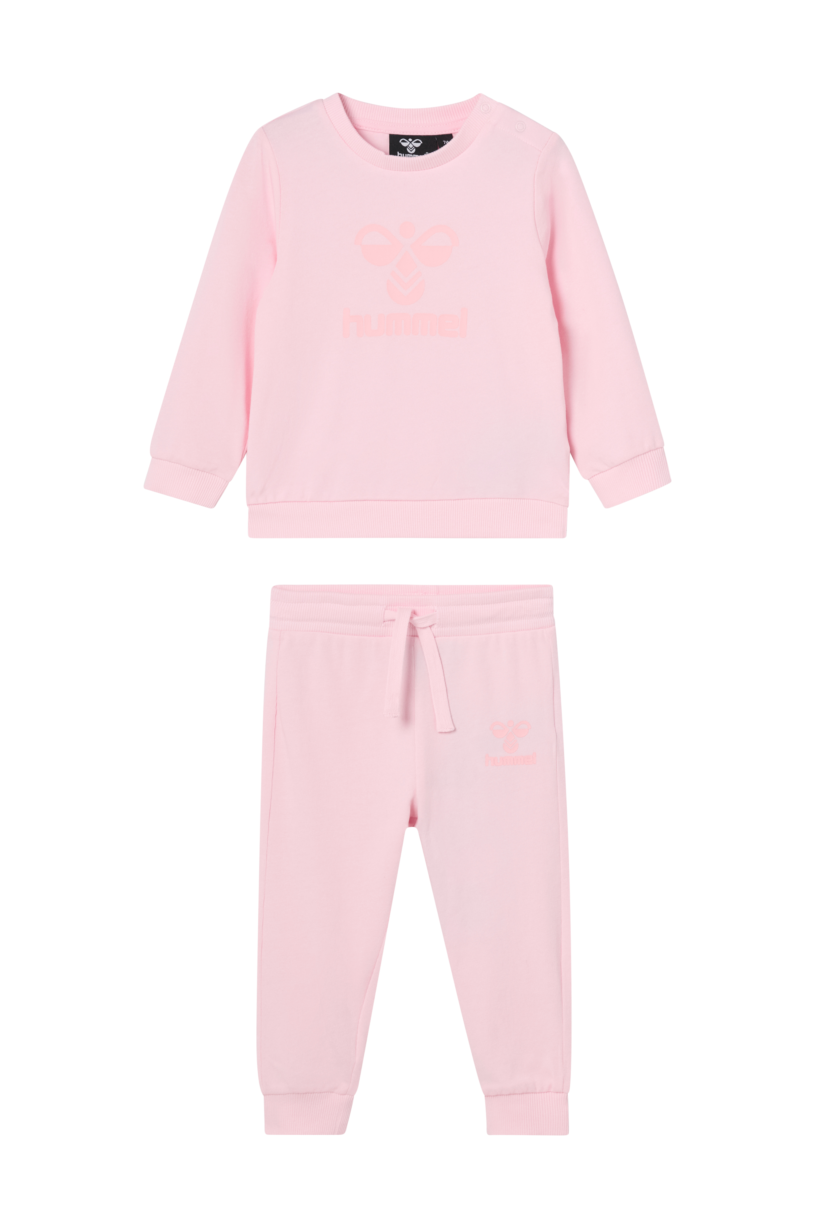 • Sweatshirt med rund halsudskæring og tryk foran• Ribmanchetter ved manchetterne og nederst• Trykknapper på en skulder• Sweatbukser med ribbet, elastisk talje og træksnørre• Ribmanchetter ved enden af benene