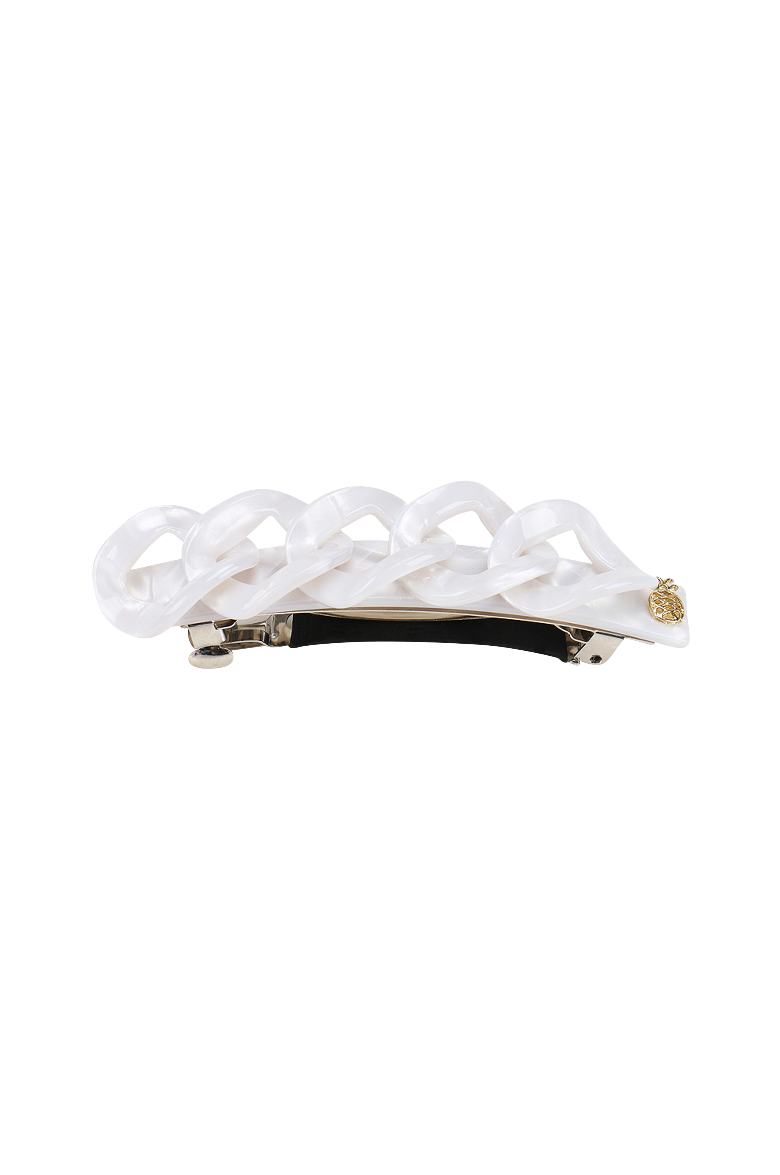 Dekorativt hårspænde med fin guldfarvet Ia Bon-logo. Skånsom mod håret.