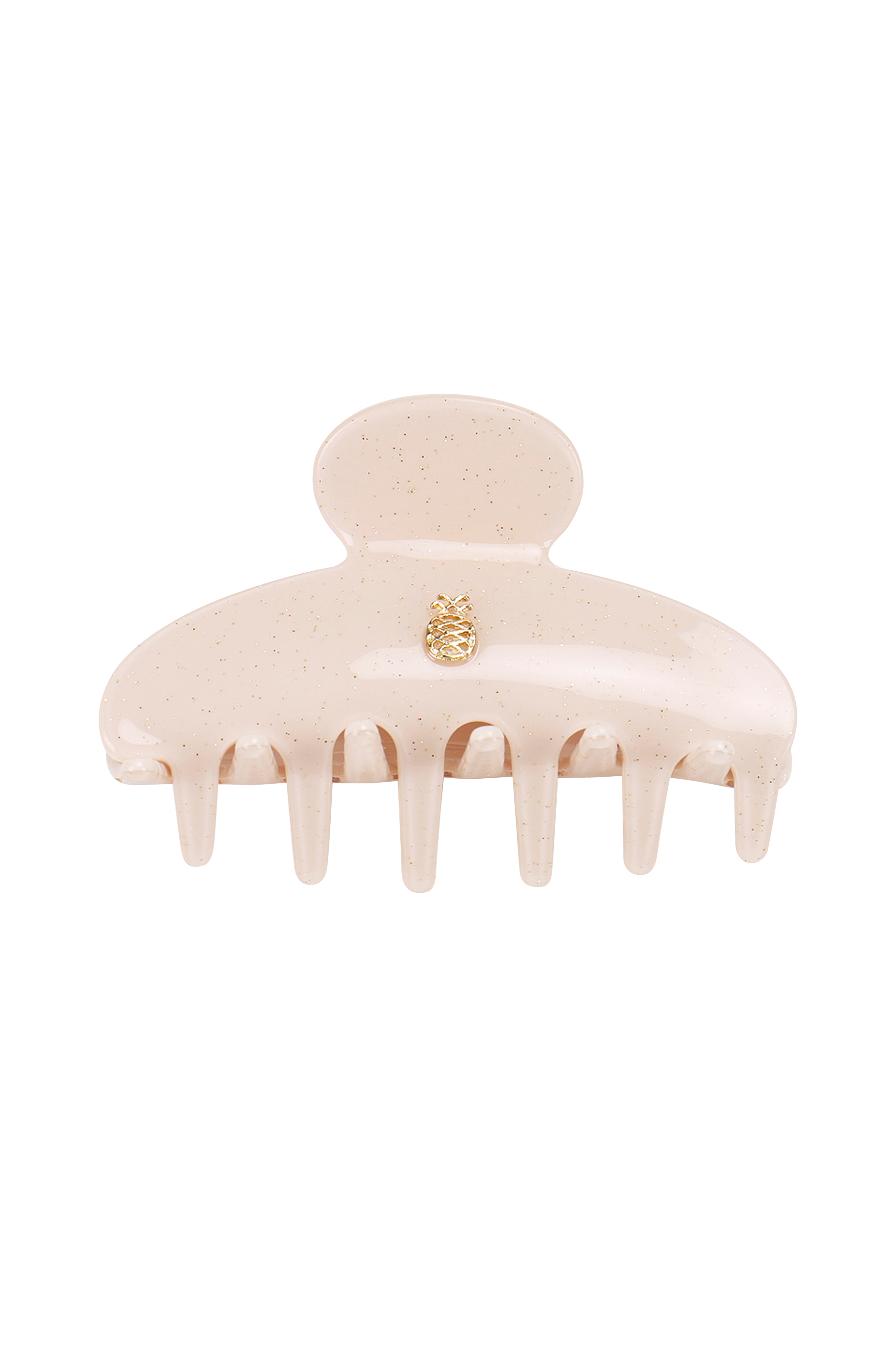 Dekorativ og praktisk hårklemme som du kan bruge til at sætte alt håret eller dele af håret op. Med guldfarvet Ia Bon-logo. Skånsom mod håret.