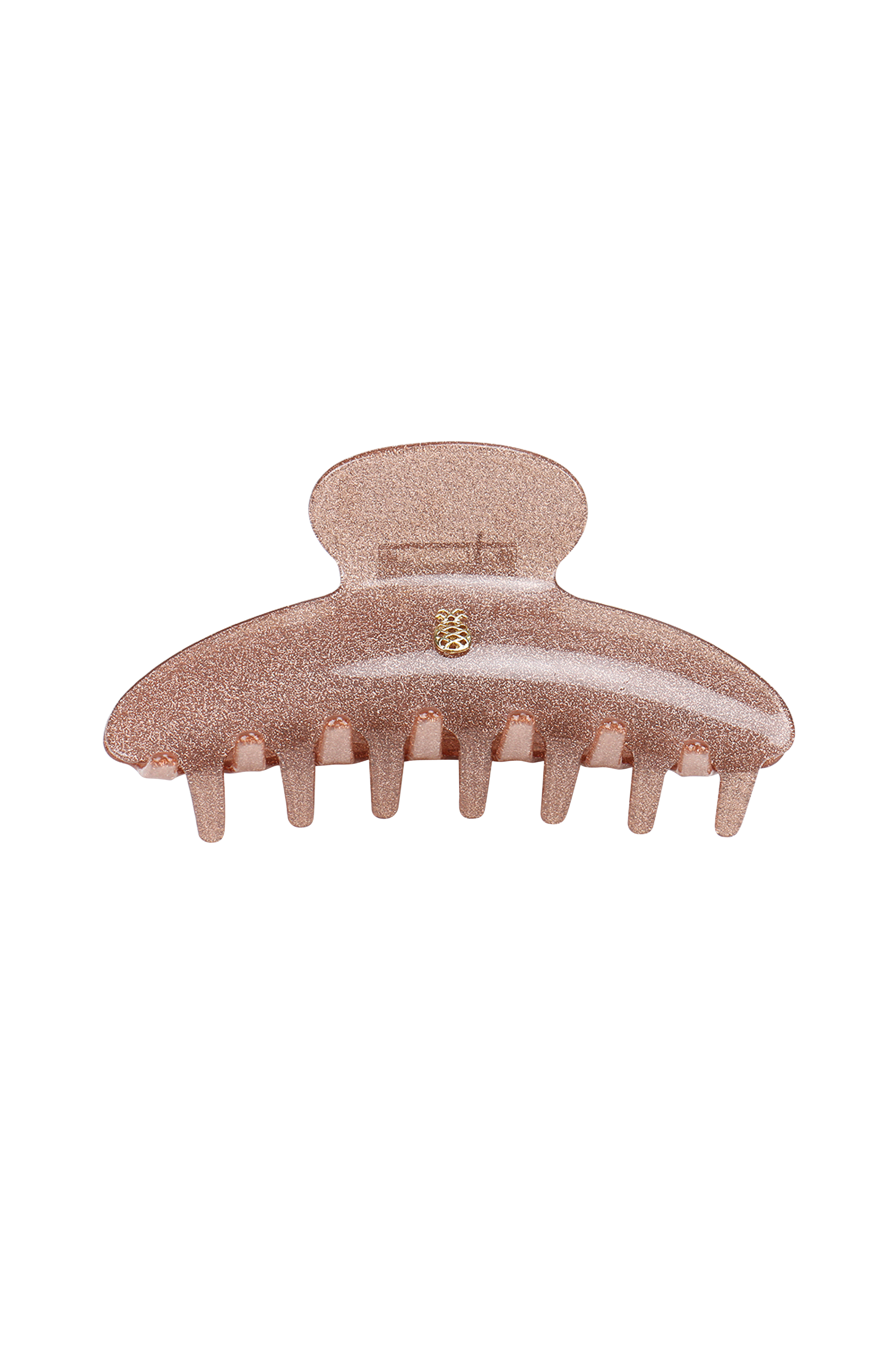 Stabil og passende stor klemme i en flot beige farve. Mere beige end lyserød og meget mere glimtende end på billedet, men stadig meget flot.