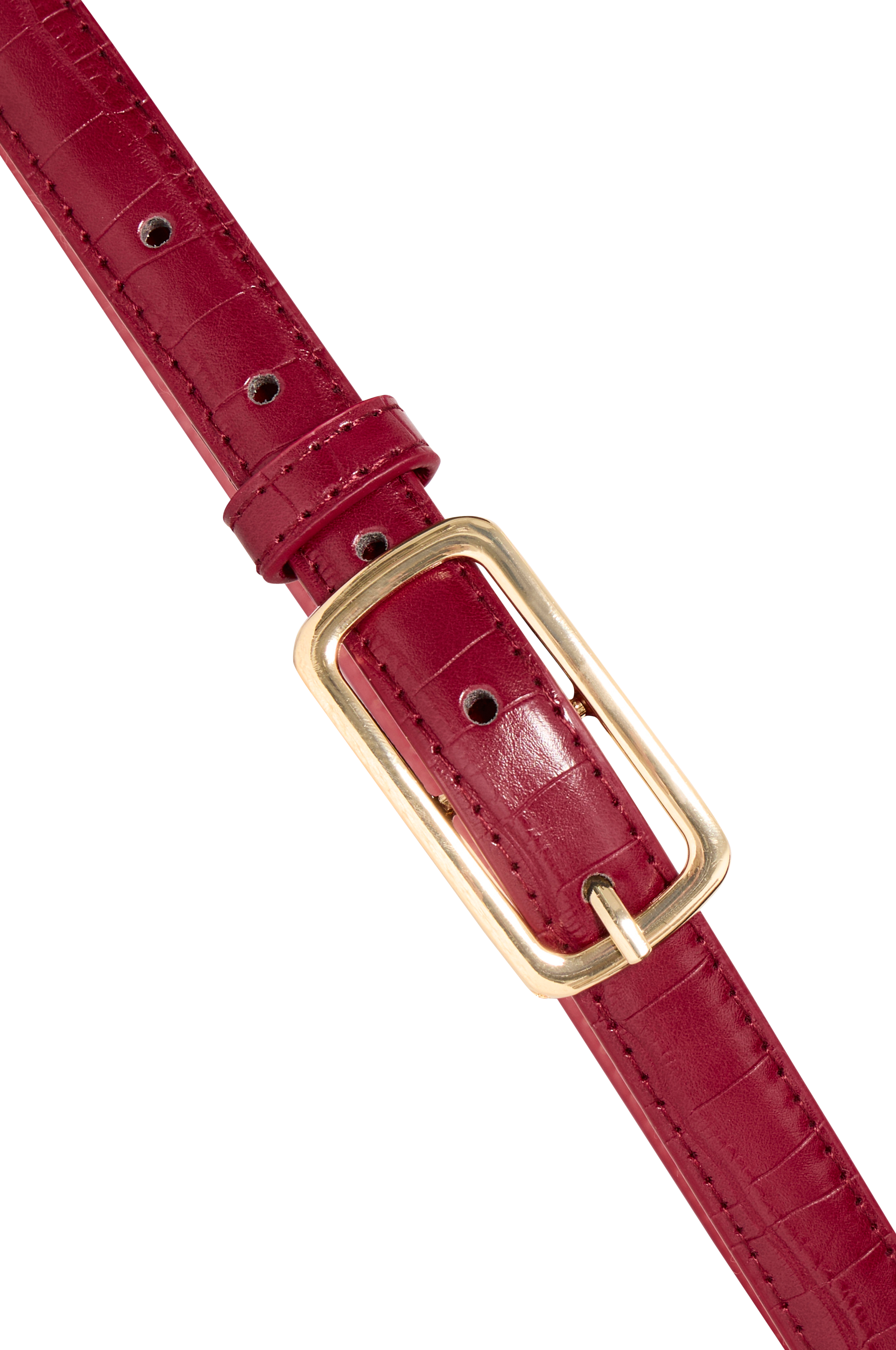 • Smalt bælte i imiteret læder• Guldfarvet metalspænde