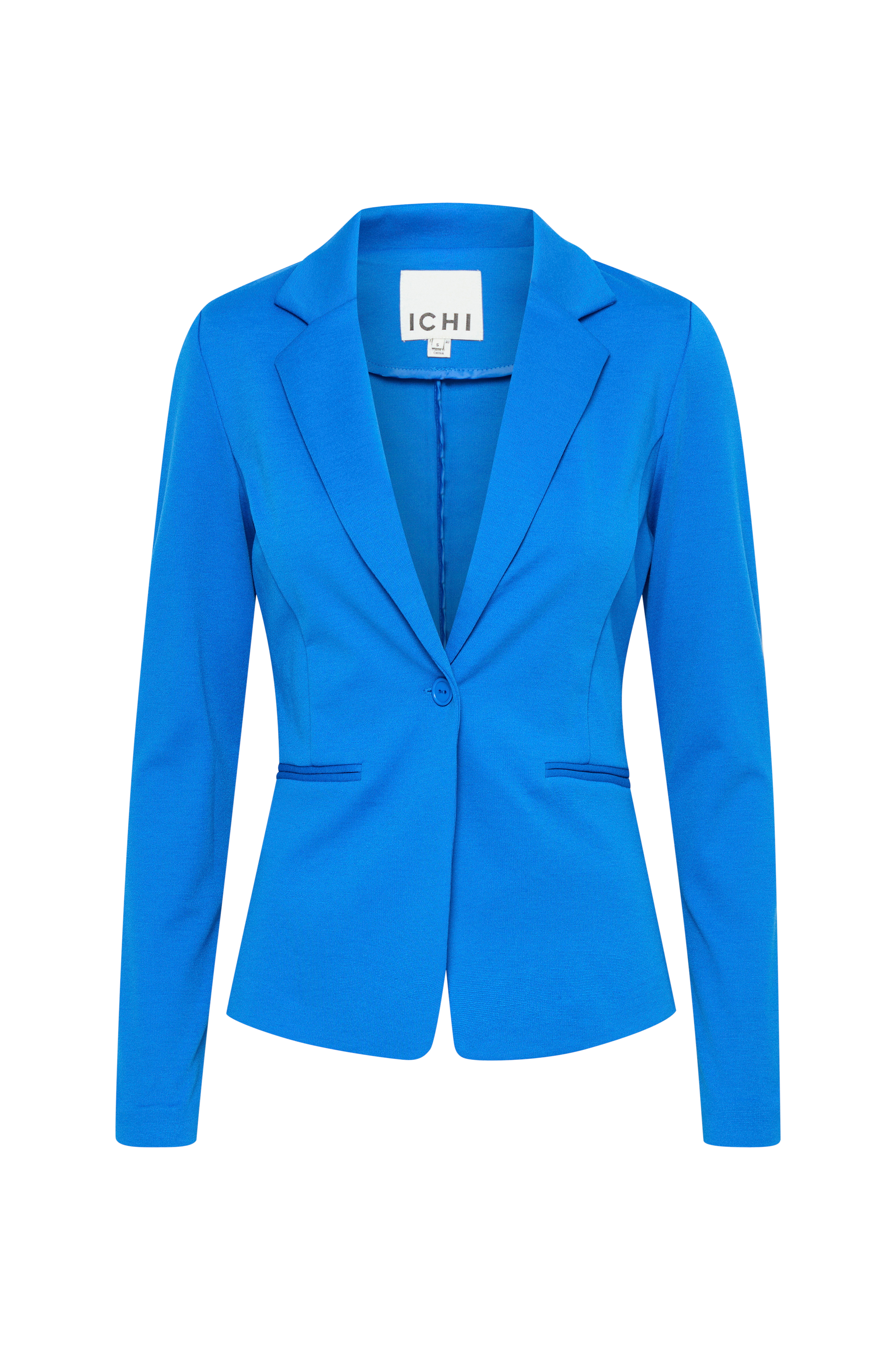 Blazer Kate fra ICHI i klassisk, let figursyet model. Enkeltradet med paspolerede lommer foran. I jersey med fin glans. Uforet. Længde ca. 62 cm i str. S.