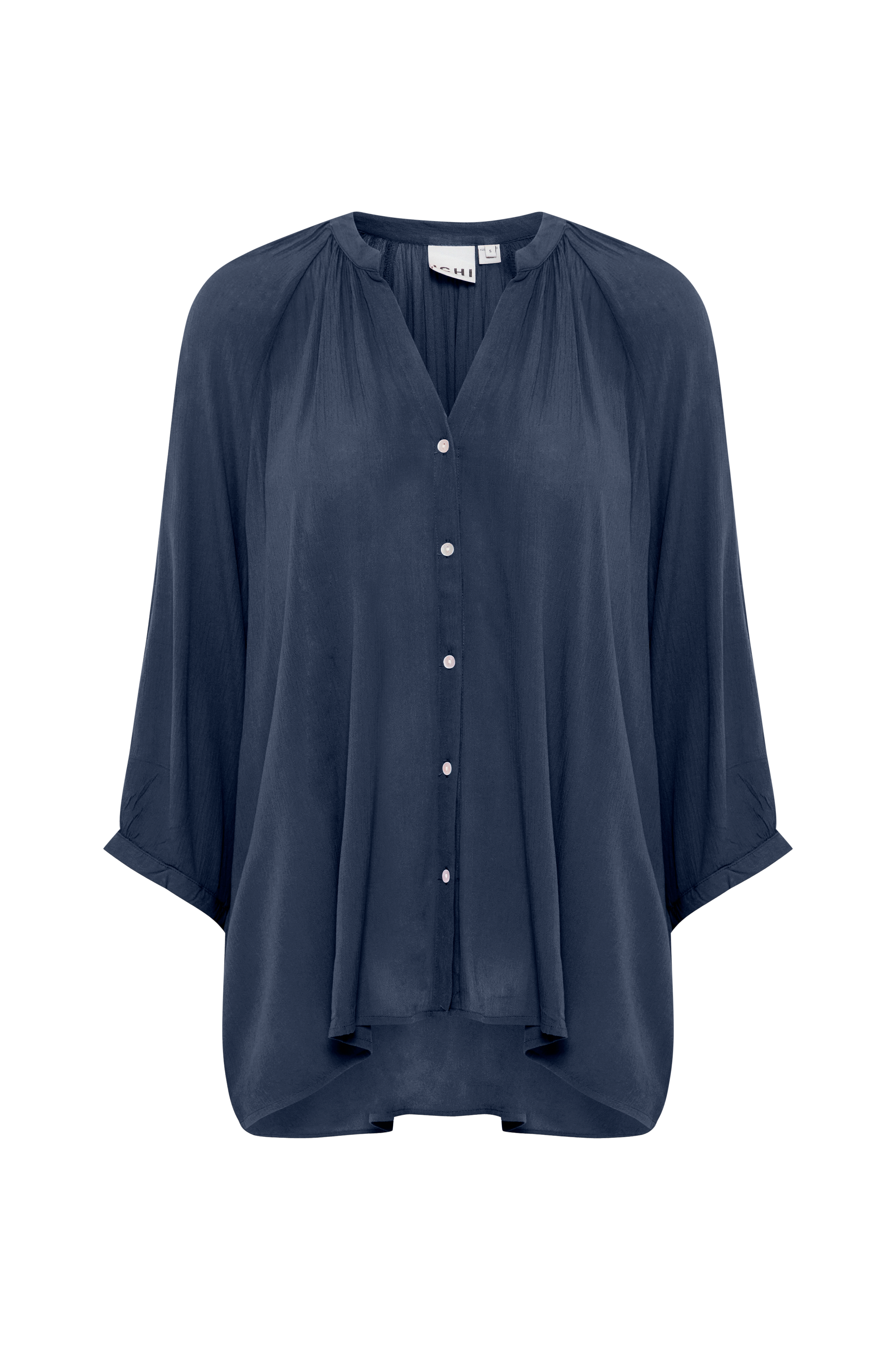 • Lige model i crepe• Halsudskæring med v-udskæring foran og knapper• 3/4 langt raglanærme med tynd manchet