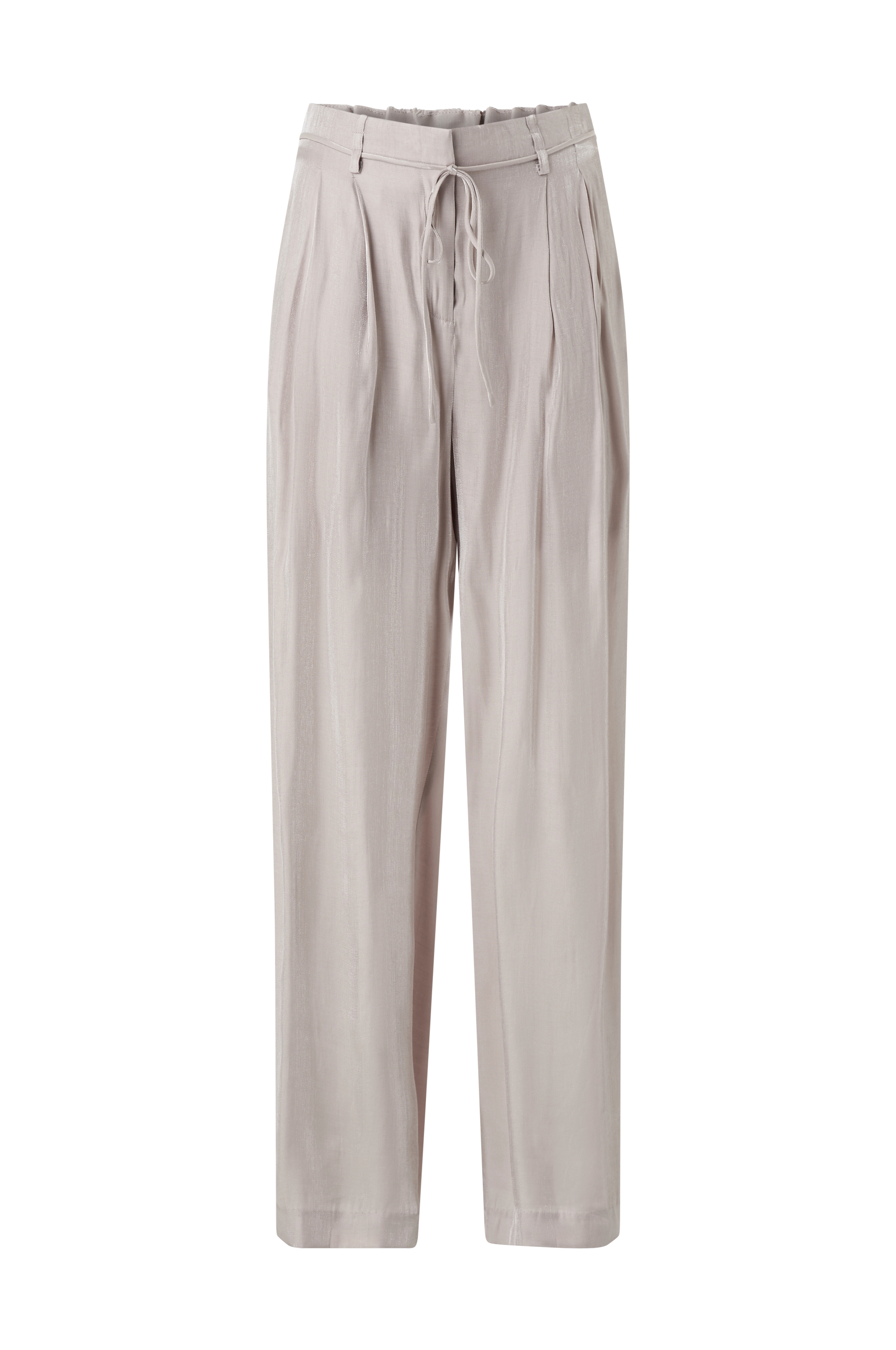 • Bukser med glød og afslappet pasform • Bæltestropper ved taljen med træksnørre og elastik bagved • Skjult gylp med lynlås med bøjle og krog • Foldede lægge foran • To skjulte sidelommer • Snydelomme bagpå • Kort inderfor på toppen • Indre benlængde: 79 cm i størrelse 36