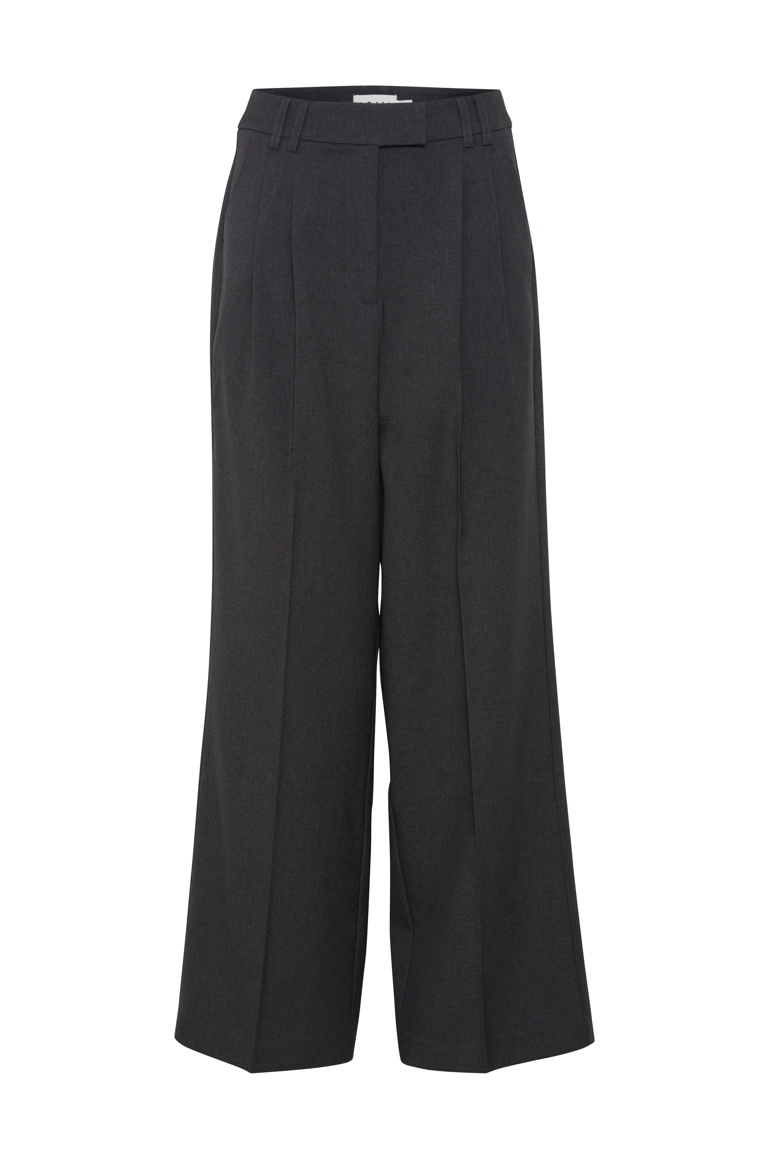 • Brede, lige ben med pressefold• Høj talje med syede lægge• Taljebånd med stropper og spændelukninger• Skrå lommer foran• Indlagte snydelommer bagpå• Længde: 72 cm i størrelse 36