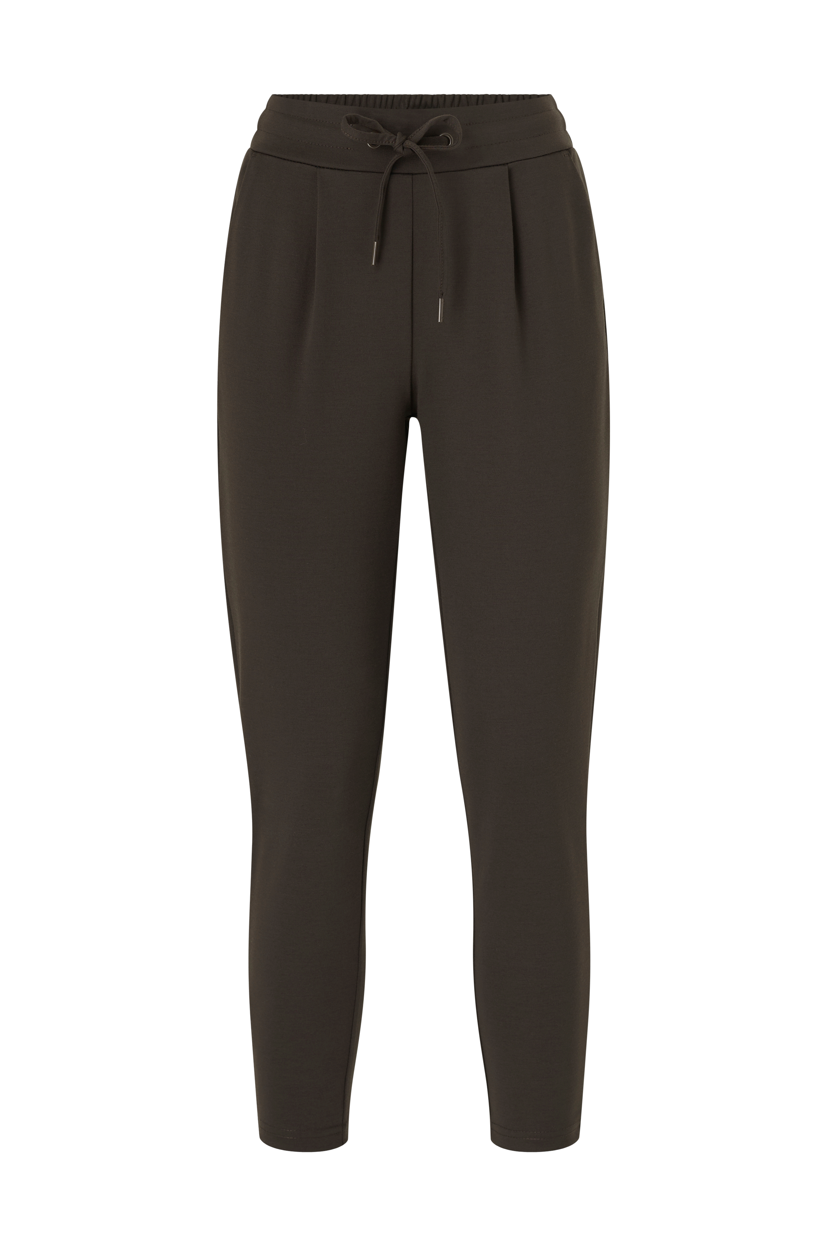 Bukser Kate fra ICHI med noget kortere ben, som bliver smallere nedefter, lommer i siderne og snydelommer bagpå. Fast talje foran og elastik bagpå samt justerbar løbegang og lagte læg foran. I blød jersey. Indvendig benlængde ca. 64 cm i str. S.