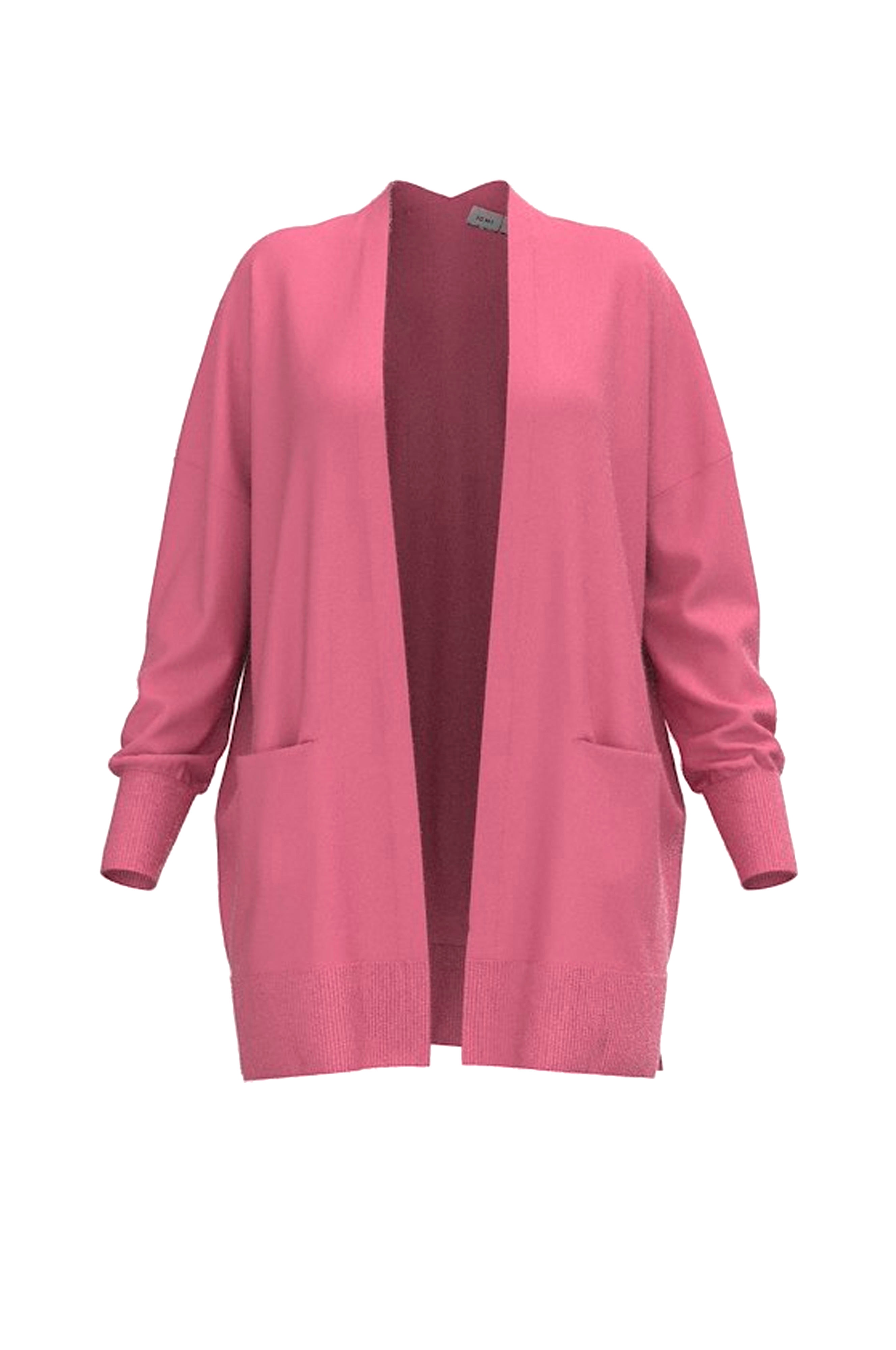Finstrikket cardigan ihAlpa Ca7 fra ICHI med løs, afslappet pasform. Åben, lang model med to lommer. Ribkanter i ærmekant og forneden. Slids i siderne.
