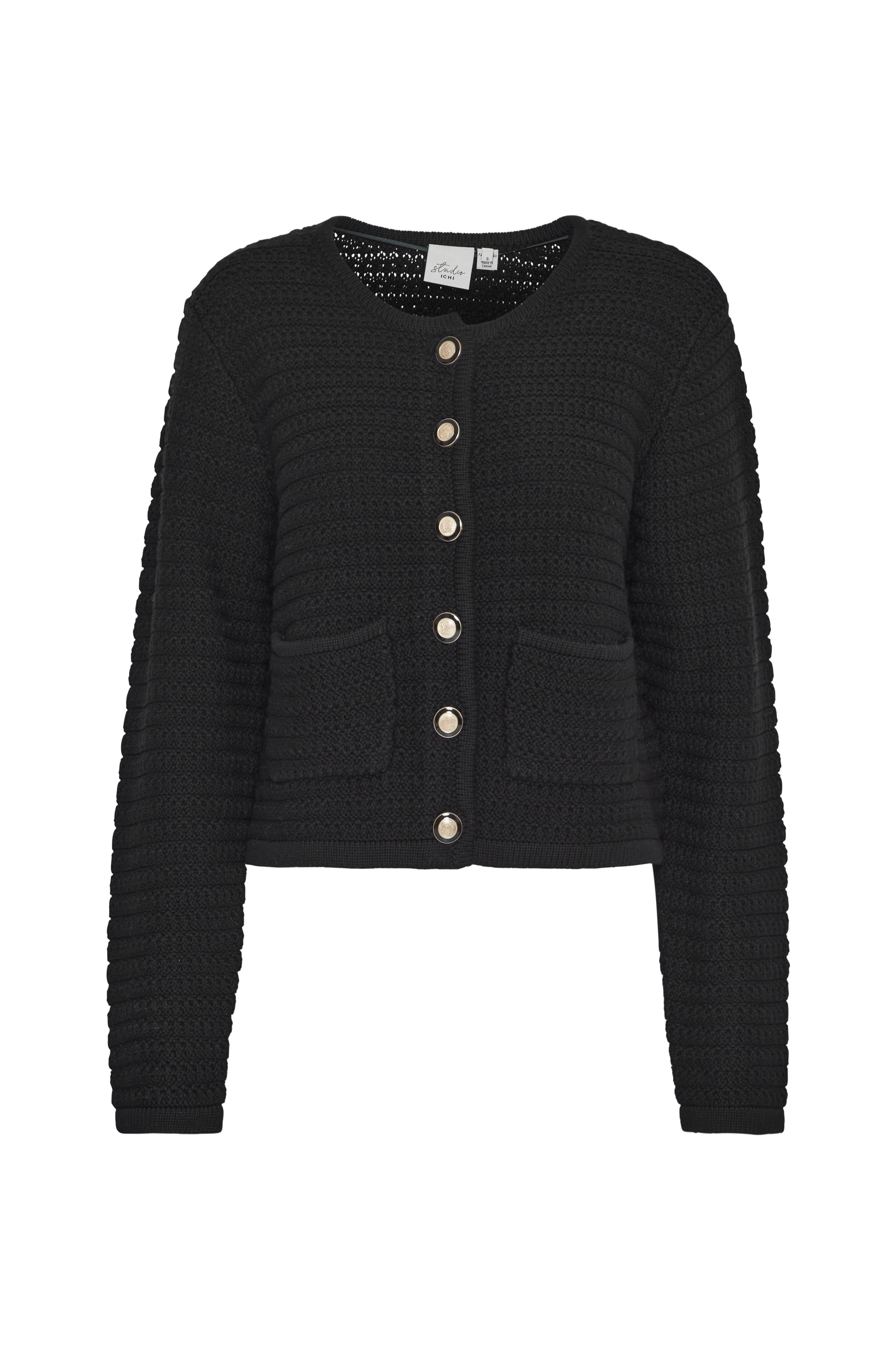 • Guldfarvede knapper foran