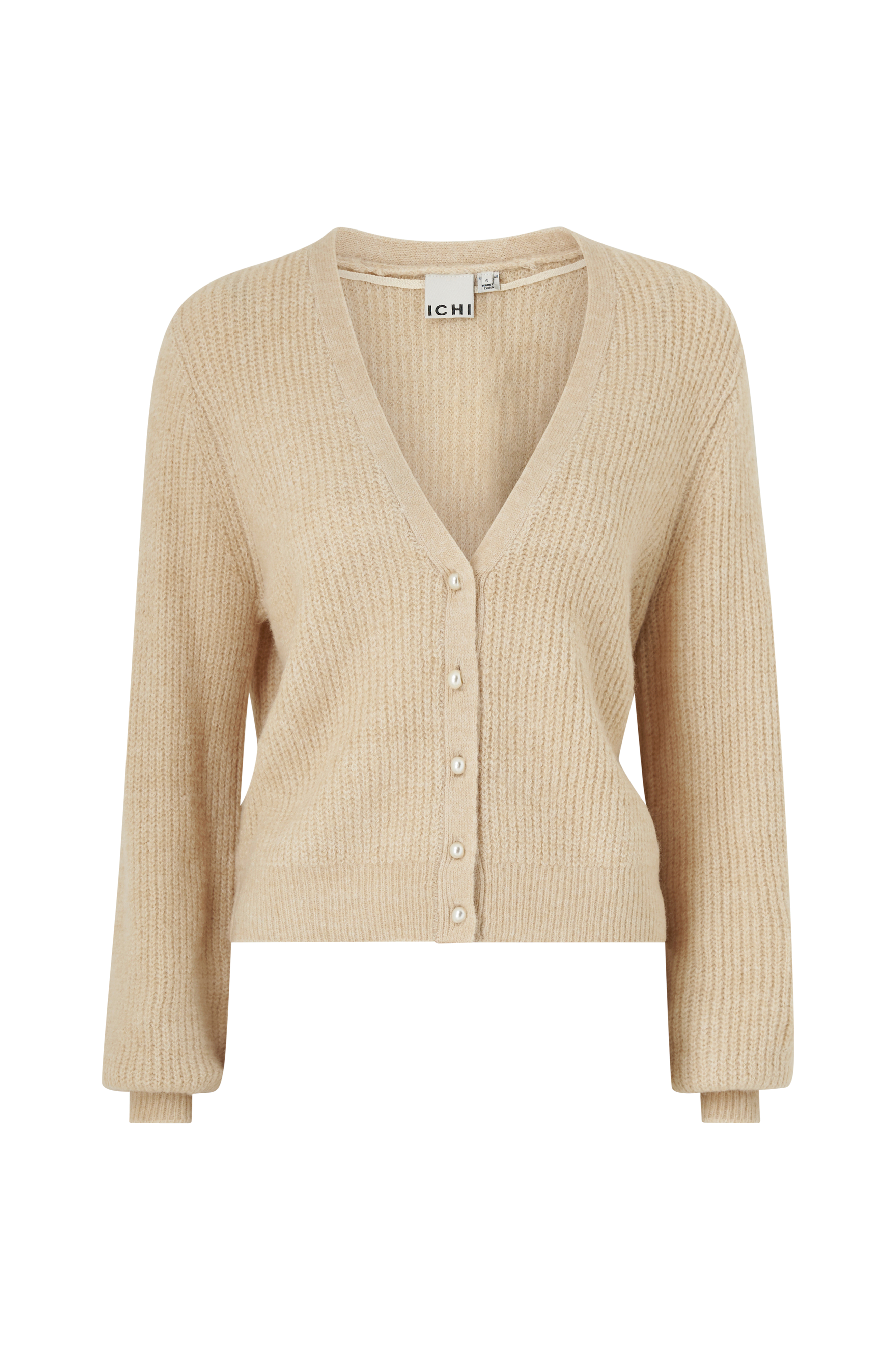 • Model med dyb v-udskæring• Perleknaper foran• Langt, bredt ærme• Ribstrik ved manchetterne og nederst