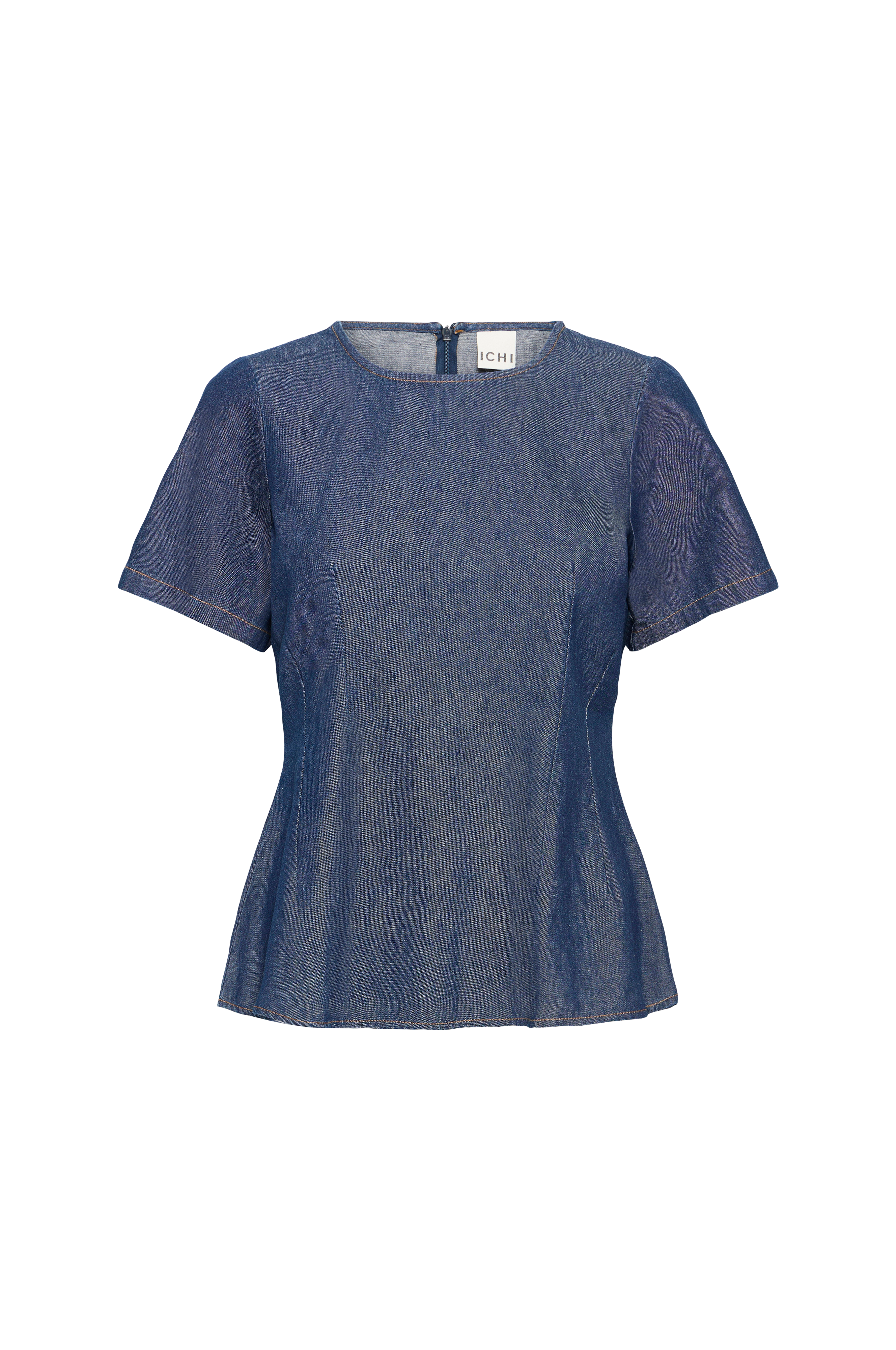 • Kortærmet peplumdesign i denim• Rund halsudskæring• Lynlås i nakken