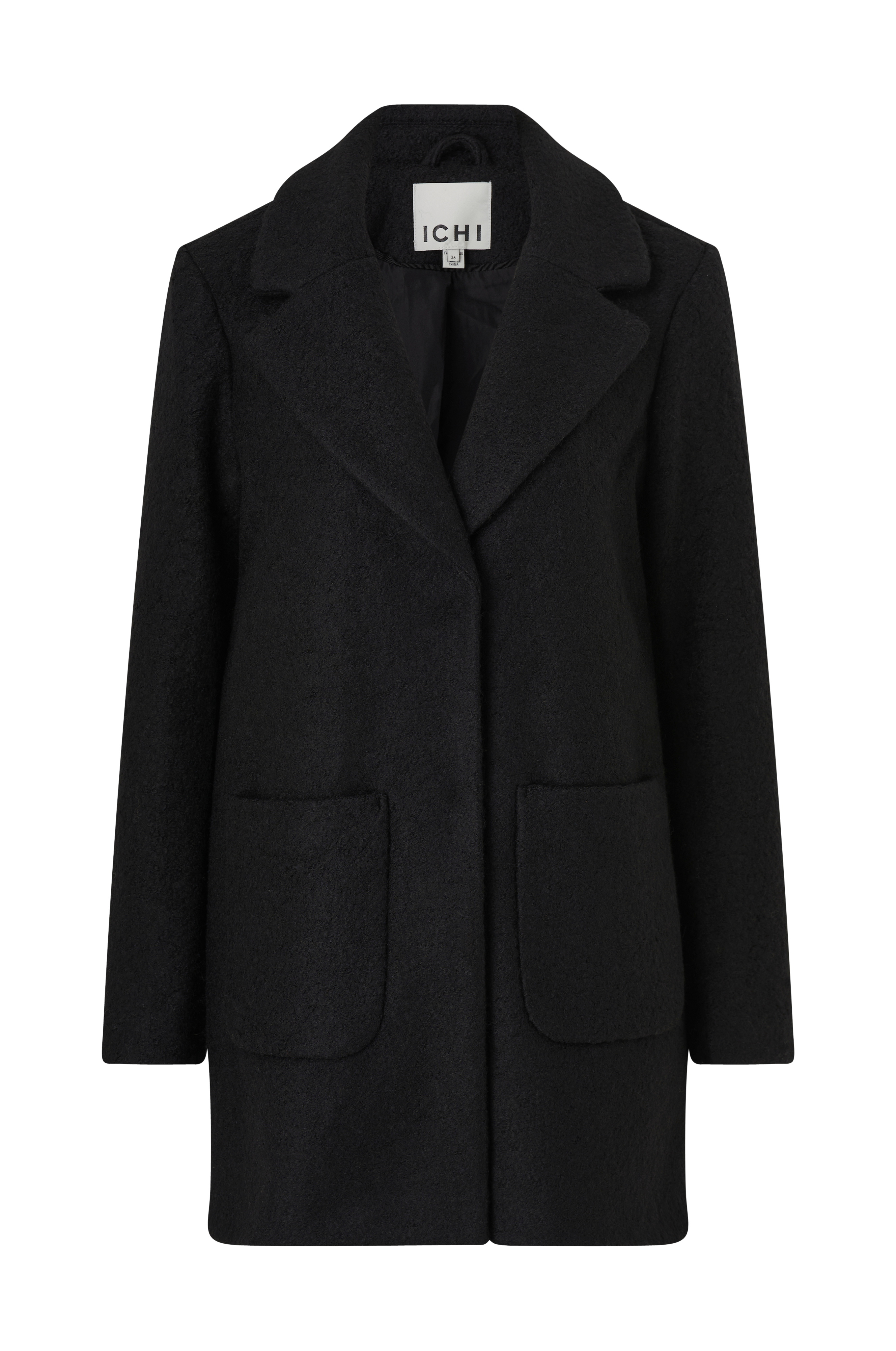 Frakke ihStipa Jacket fra ICHI i klassisk model i uldblanding. Skjulte trykknapper og to påsyede lommer foran. Tyndt, vævet for. Længde ca. 82 cm i str. 36.