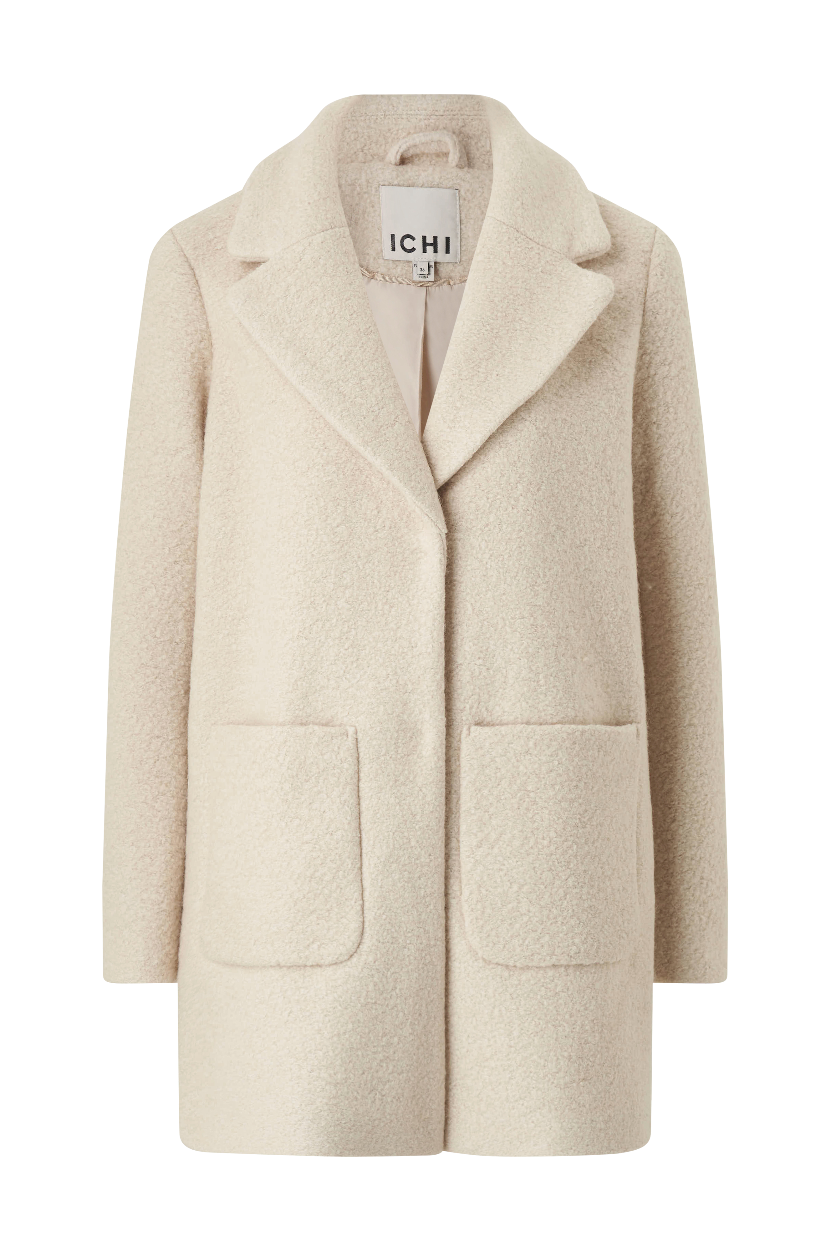 Frakke ihStipa Jacket fra ICHI i klassisk model i uldblanding. Skjulte trykknapper og to påsyede lommer foran. Tyndt, vævet for. Længde ca. 82 cm i str. 36.