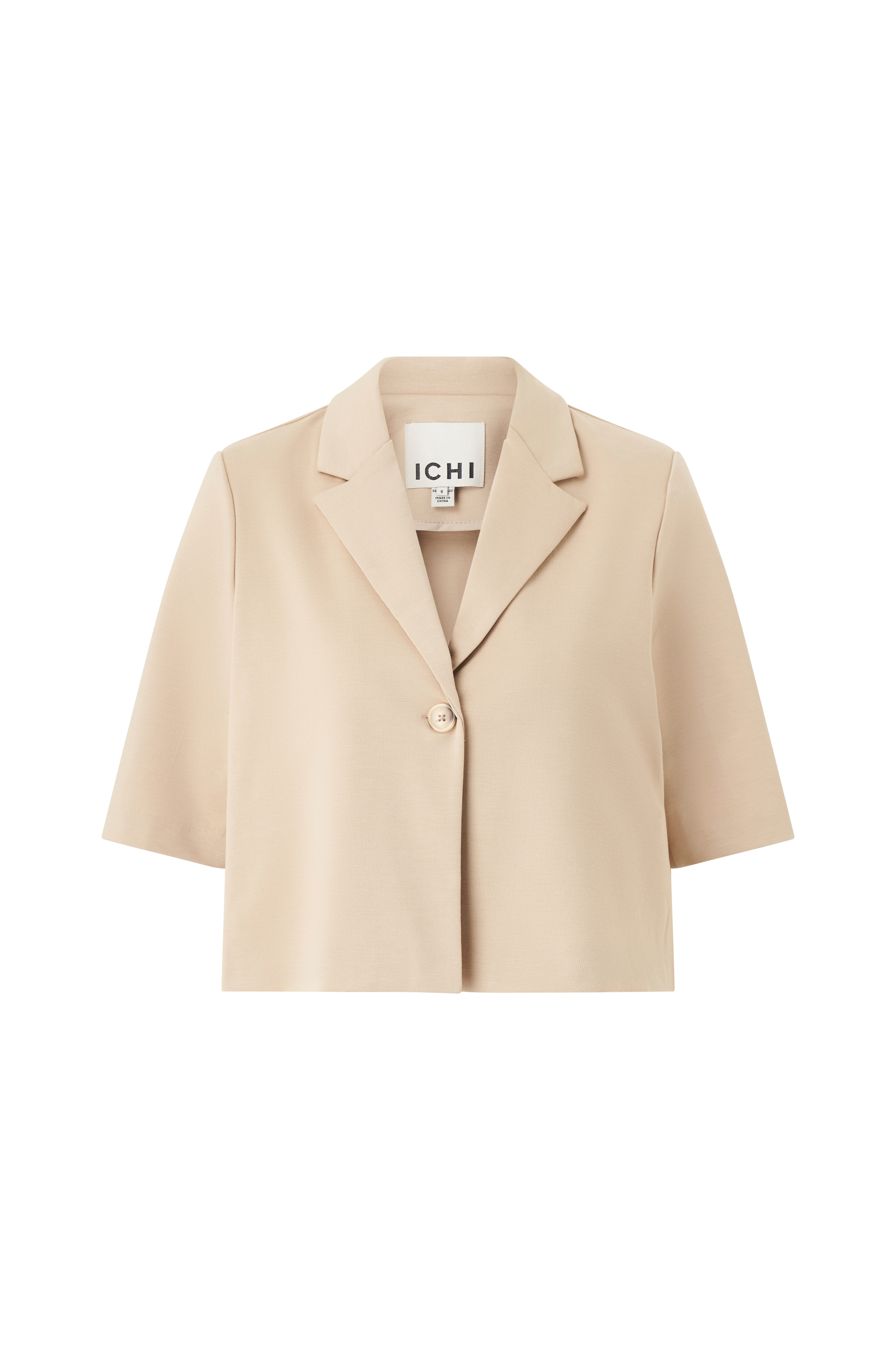 • Kort, bred model i jersey• Krave med revers• En knap foran• Lige, halvlangt ærme• Skulderpuder• Uforet• Længde: 50 cm i størrelse S