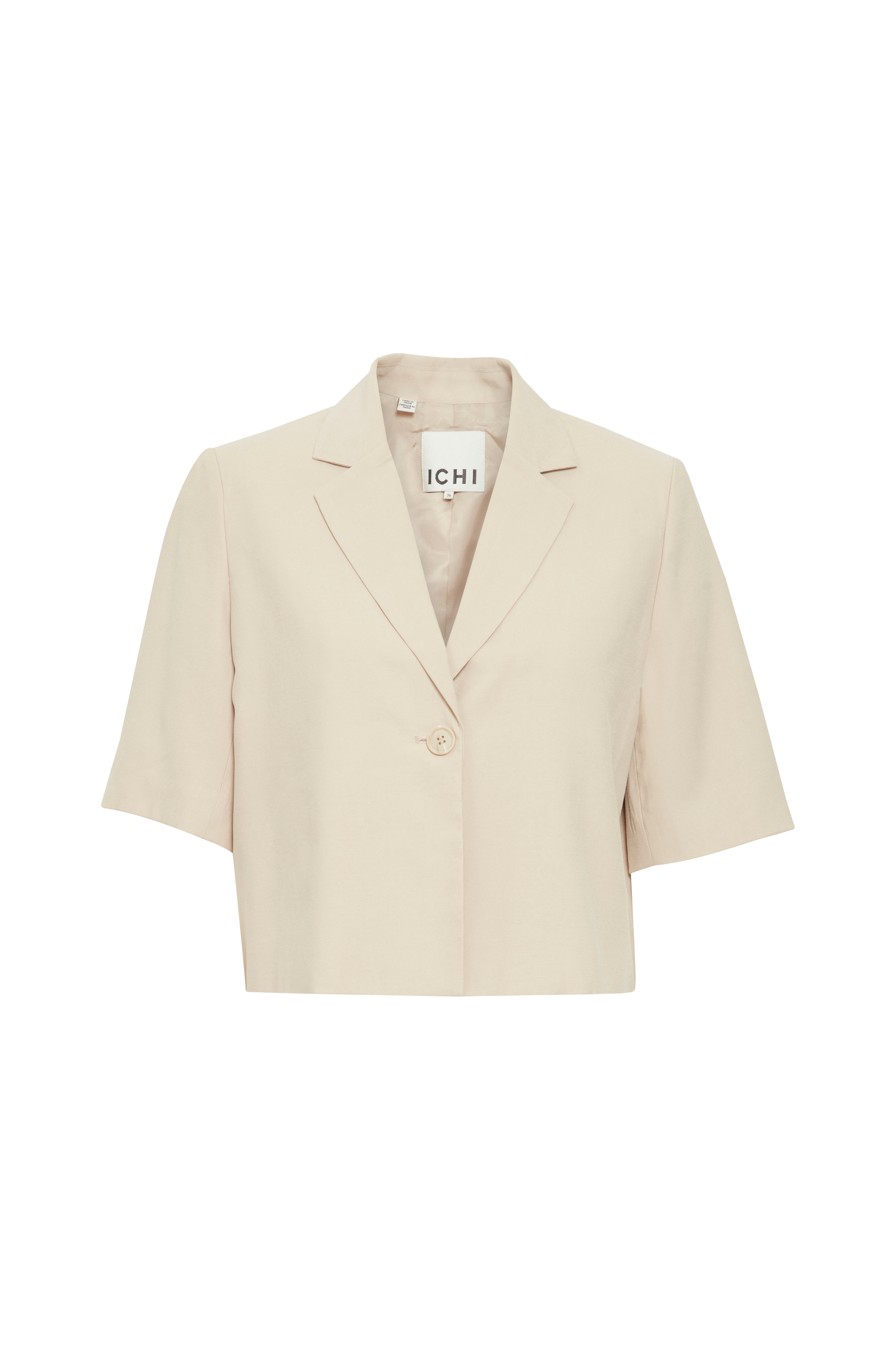 • Kort, lige model med halvlangt ærme• Krave med revers og en knap foran• Skulderpuder• Foret• Længde: 50 cm i størrelse 36