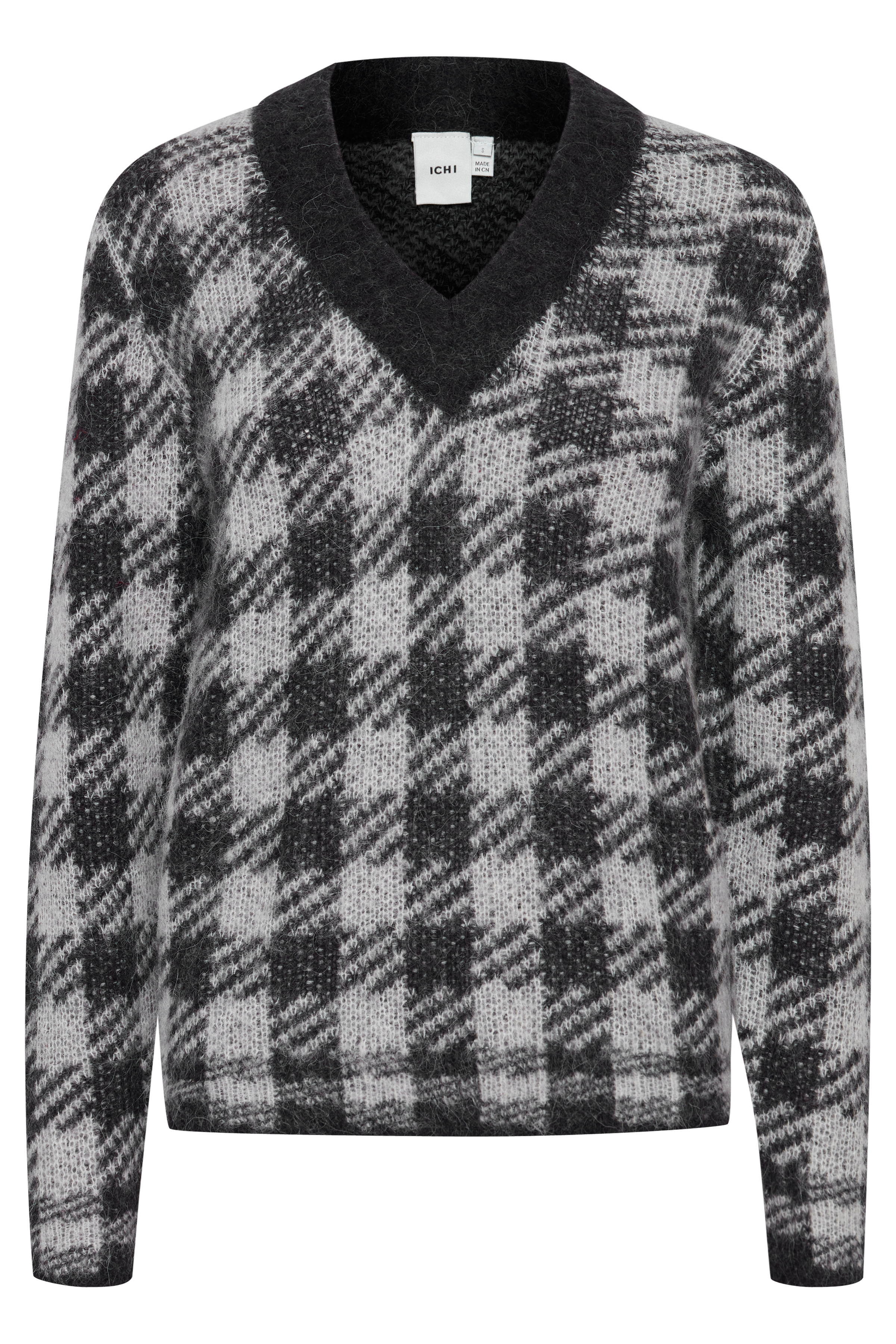 Strikket trøje i alpakablanding med let lodden overflade. Ribstrikket V-udskæring.