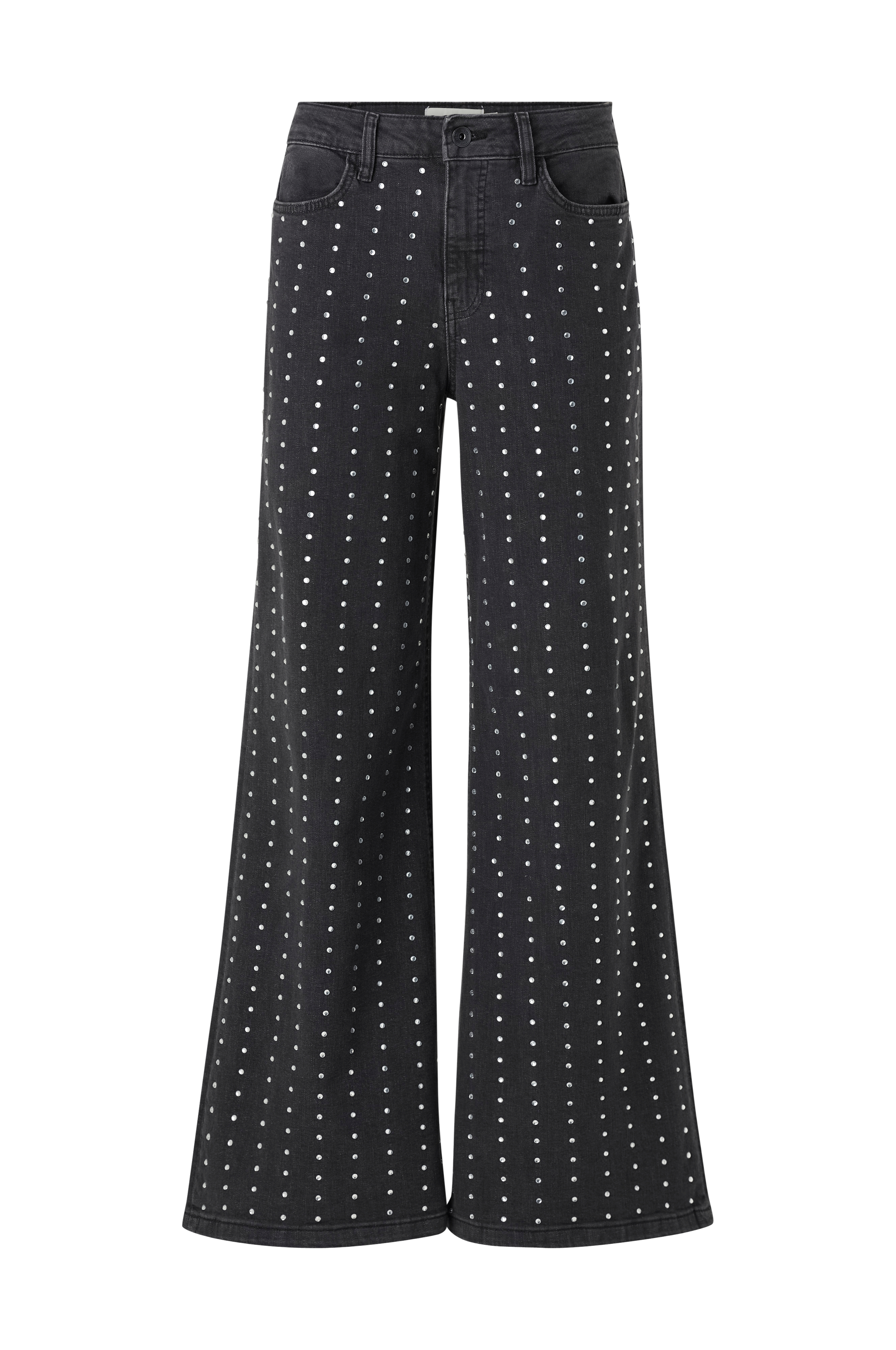 • Jeans med lige, bredt ben med en pasform med svaj og rhinsten på forsiden• 5-lomme bukser• Lukning med lynlås og knap foran• Høj talje