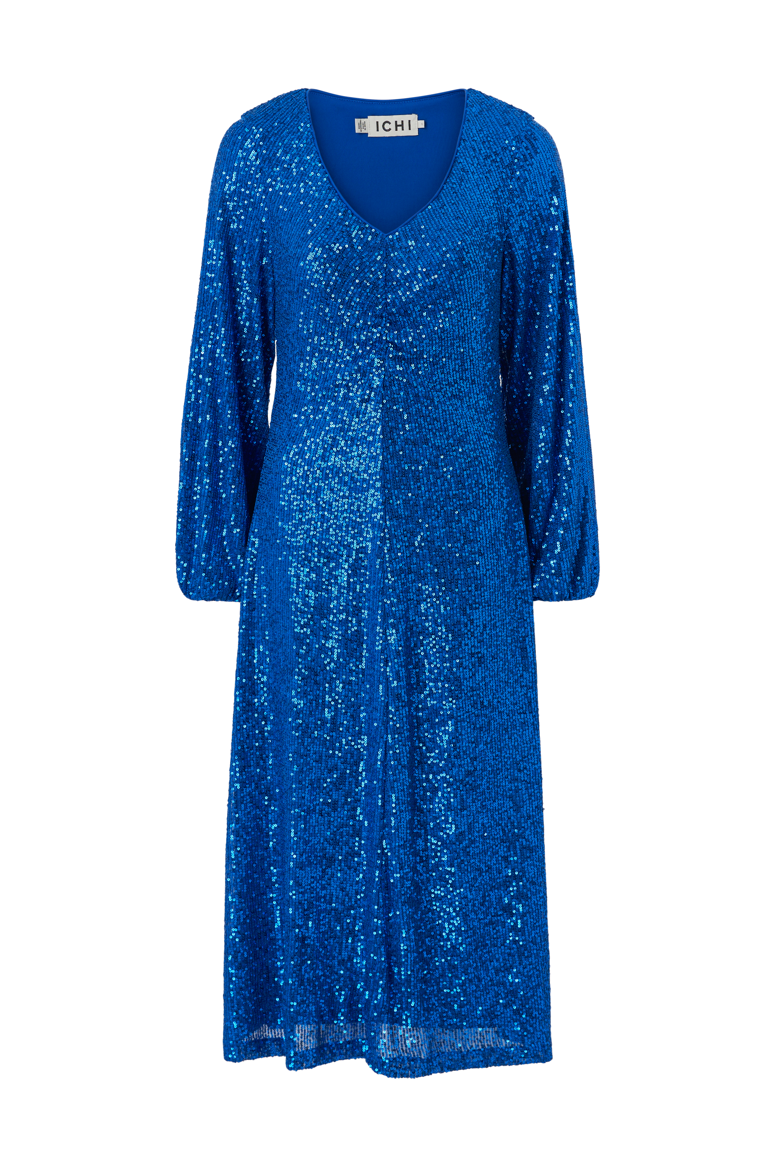 • Kjole med pailletter• V-formet halsudskæring• Rynkede detaljer midt foran• Lange ærmer med elastik ved manchetterne• Længde: 123 cm i størrelse S