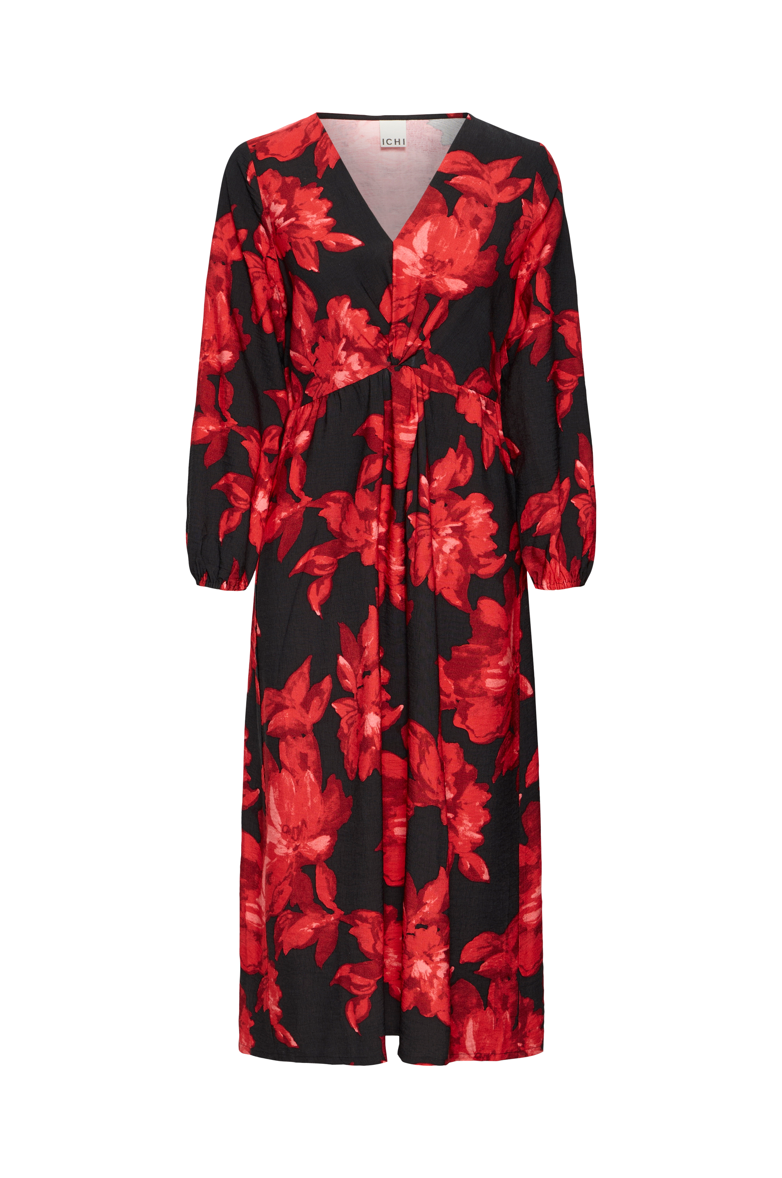 • Kjole i viskoseblanding med struktur og et blomstermønster• V-formet halsudskæring• Drapering på toppen• Lange ærmer med elastik ved manchetterne• Nederdel med svaj• Længde: 125 cm i størrelse 36
