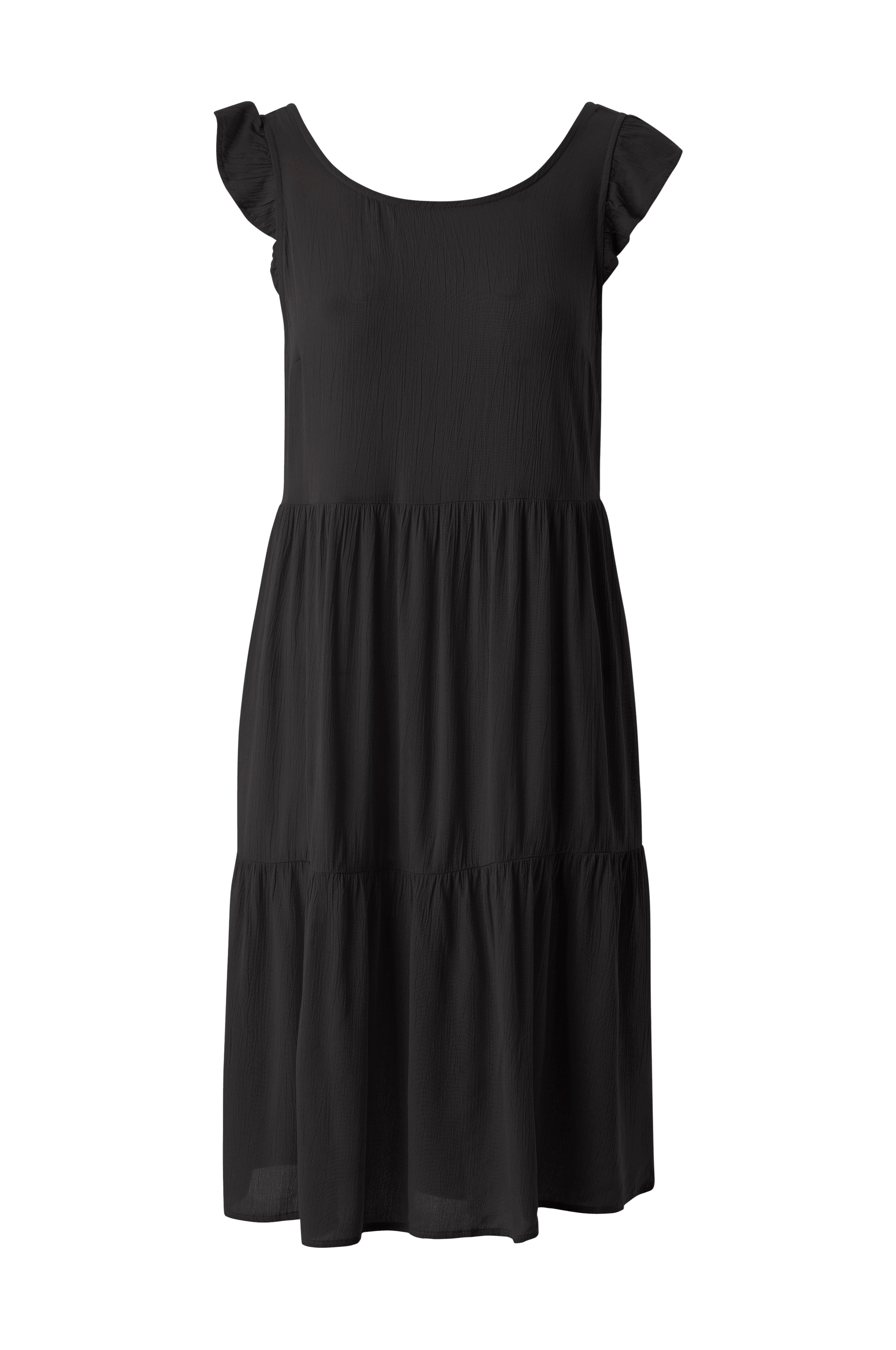 • Kjole i rynket viskose• Volanter på skuldrene• Åbning med snøring i ryggen• Længde: 96 cm i størrelse S