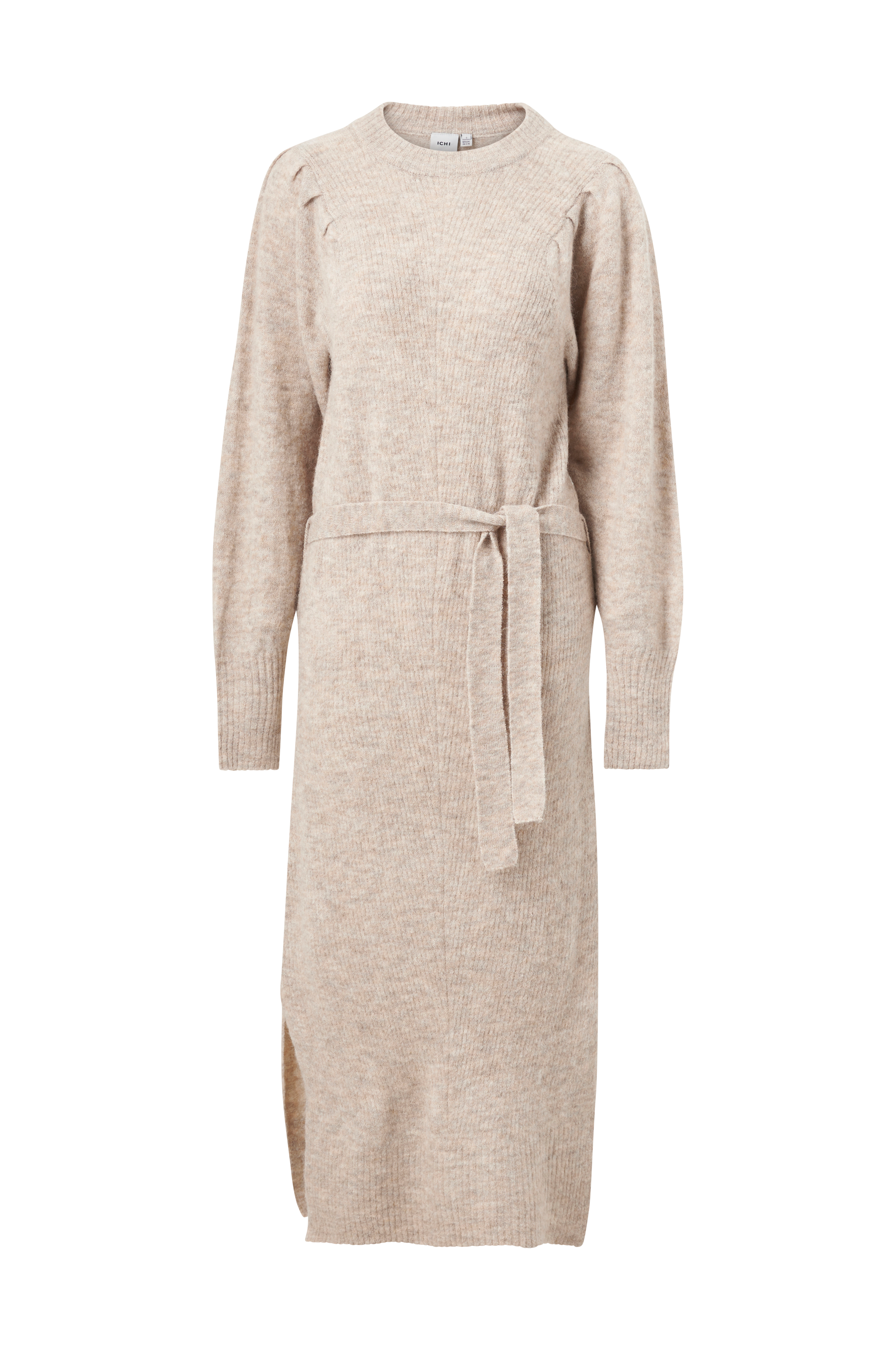 • Lang, strikket kjole med bindebælte ved taljen• Noget bredere ærmer• Lægge på skuldrene• Lige, smal pasform• Slidser i siderne• Fremstillet af uldmiks• Længde: 135 cm i størrelse S
