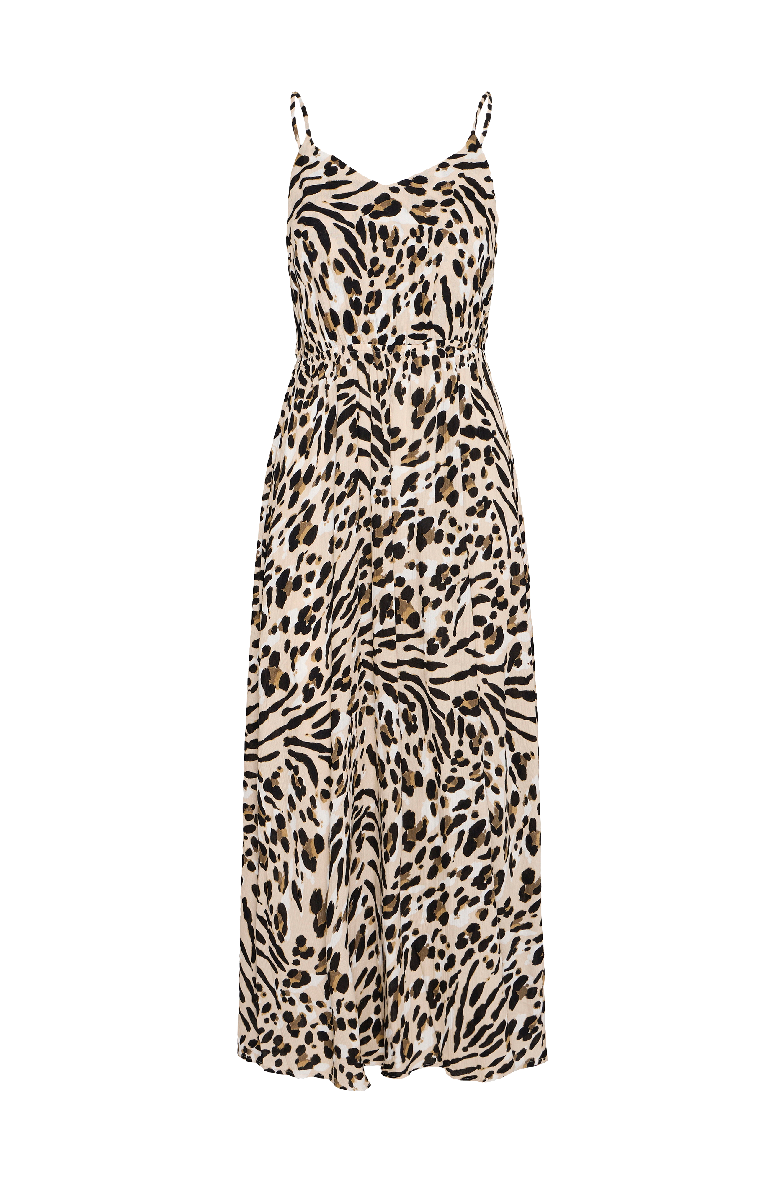 • Ærmeløs, figurformede model i crepe• Defineret, elastisk talje• V-formet halsudskæring• Åben ryg med langt bindebånd på toppen• Længde: 129 cm i størrelse S