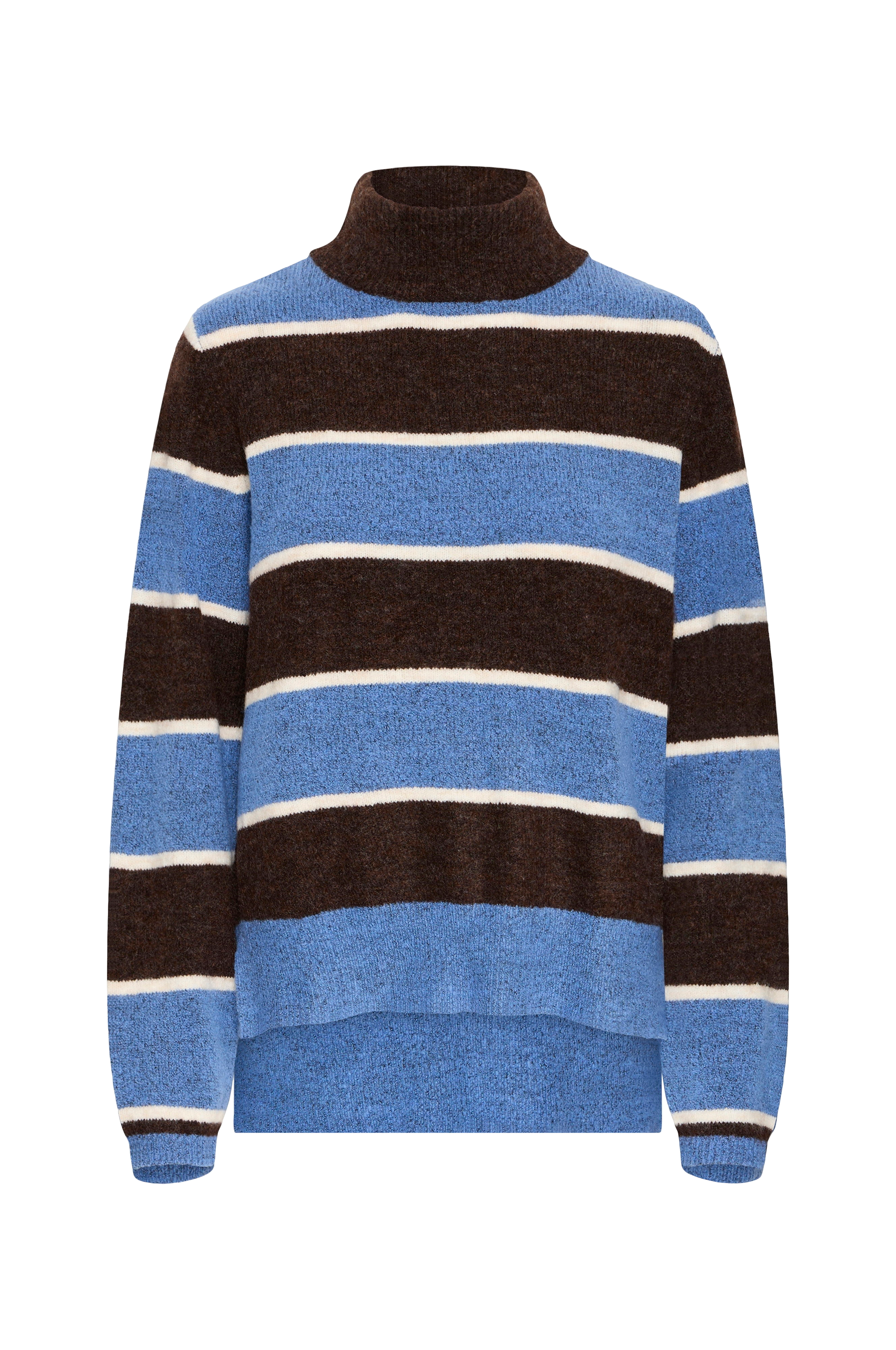 • Fintstrikket, langærmet Pullover med høj, ribbet krave• Slids nede i siderne• Ribkanter ved ærmeafslutningerne og ved nederste kant