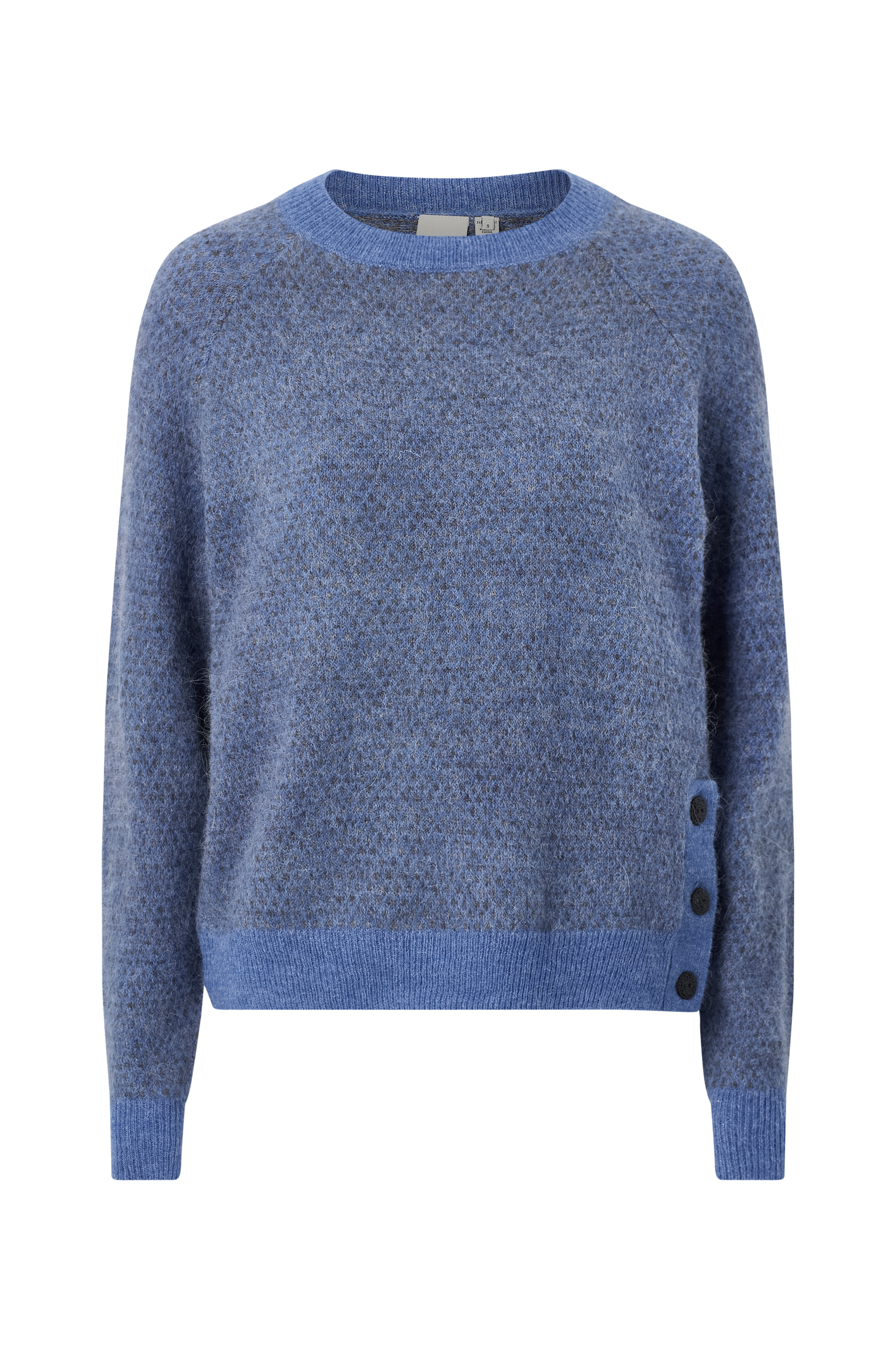 • Fintstrikket, langærmet Pullover med rund, ribbet halsudskæring• Ribstrik ved manchetterne og ved nederste kant• Slids med tre knapper nederst på siden