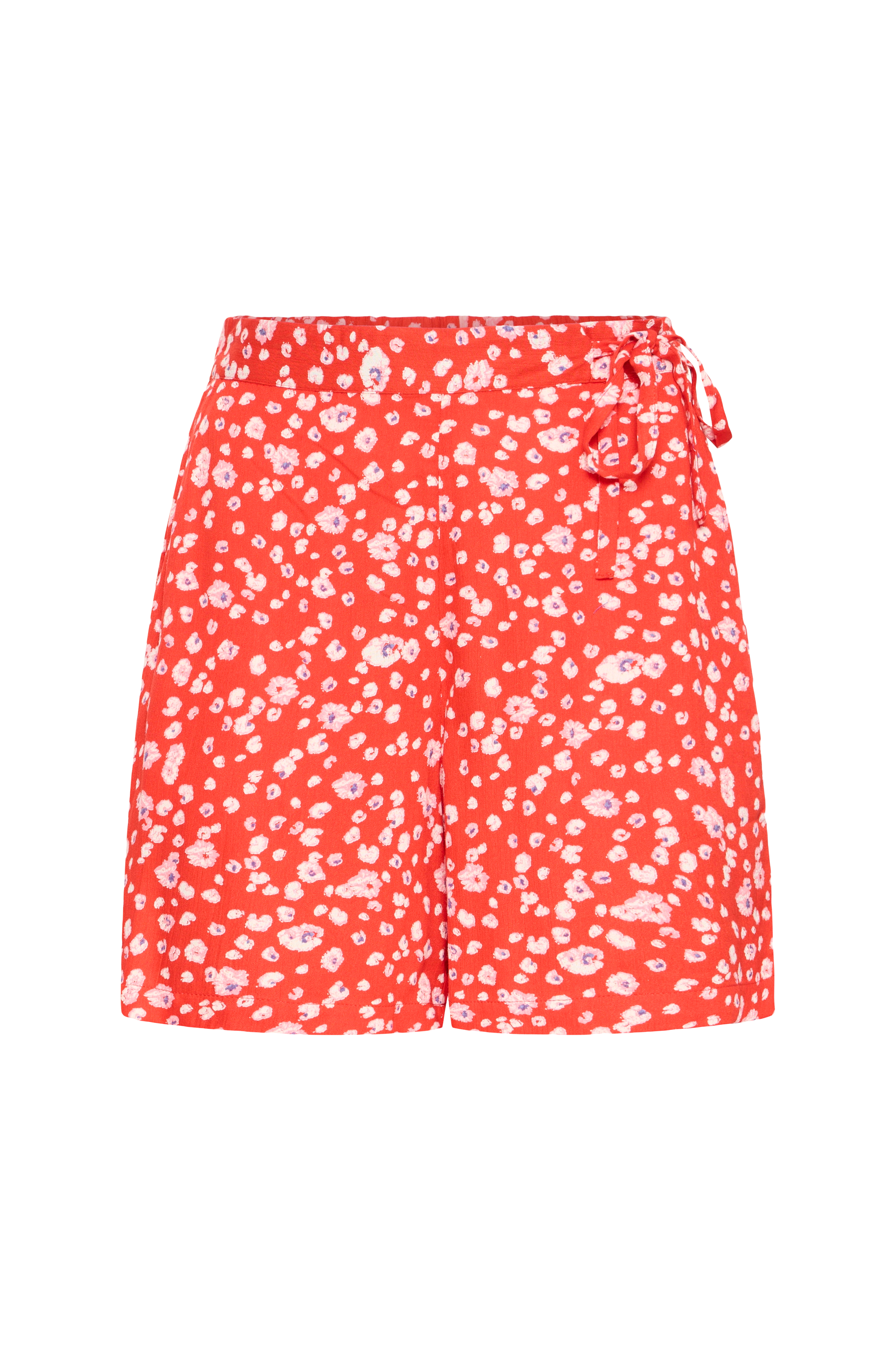 • Bredt shorts i rynket materiale• Høj talje med elastik bagpå• Knudedetalje øverst på siden• Sidelommer