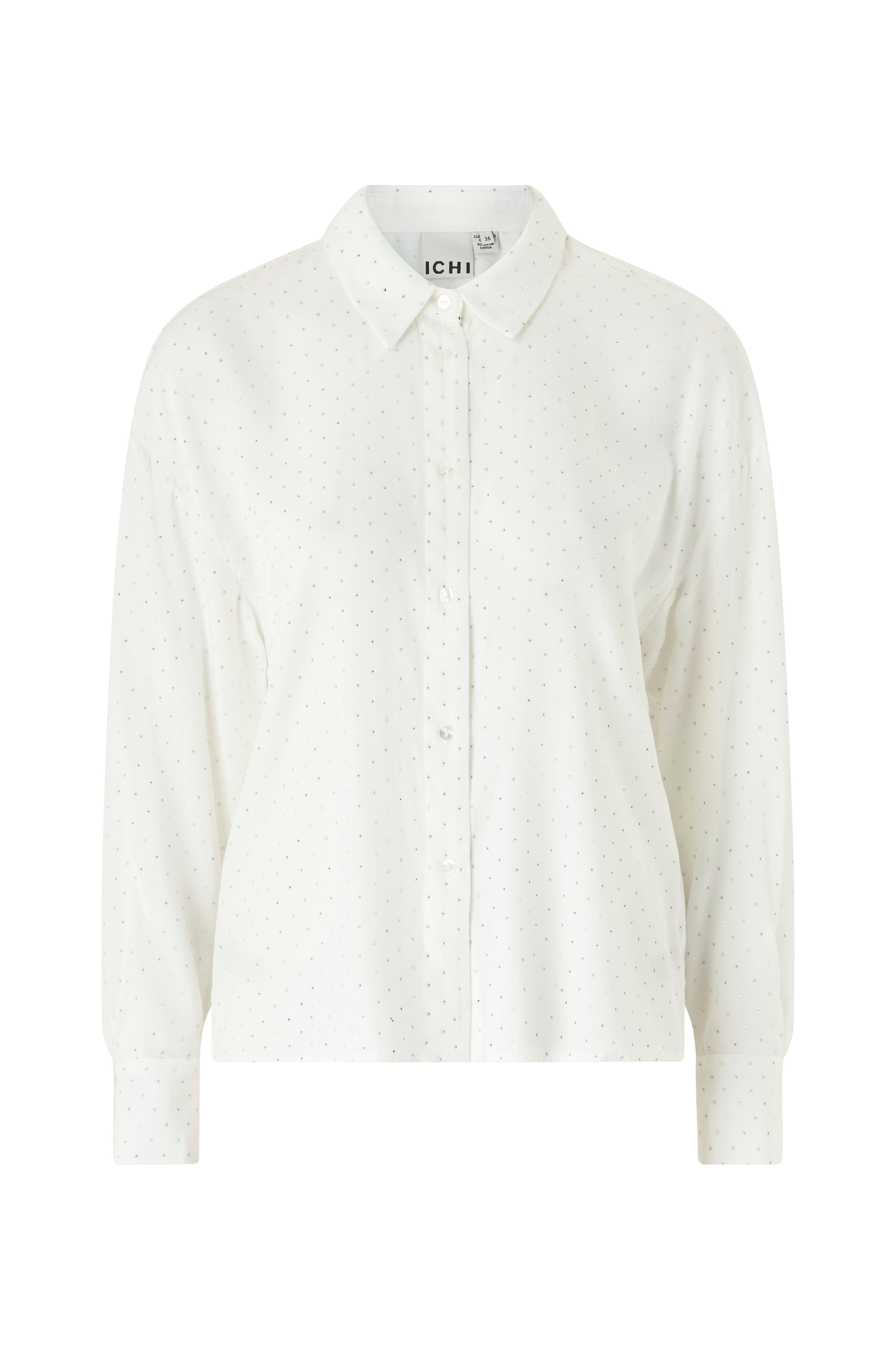 • Skjorte med glød og rhinstene hele vejen rundt• Lange ærmer med manchetter ved manchetterne• Knapper foran