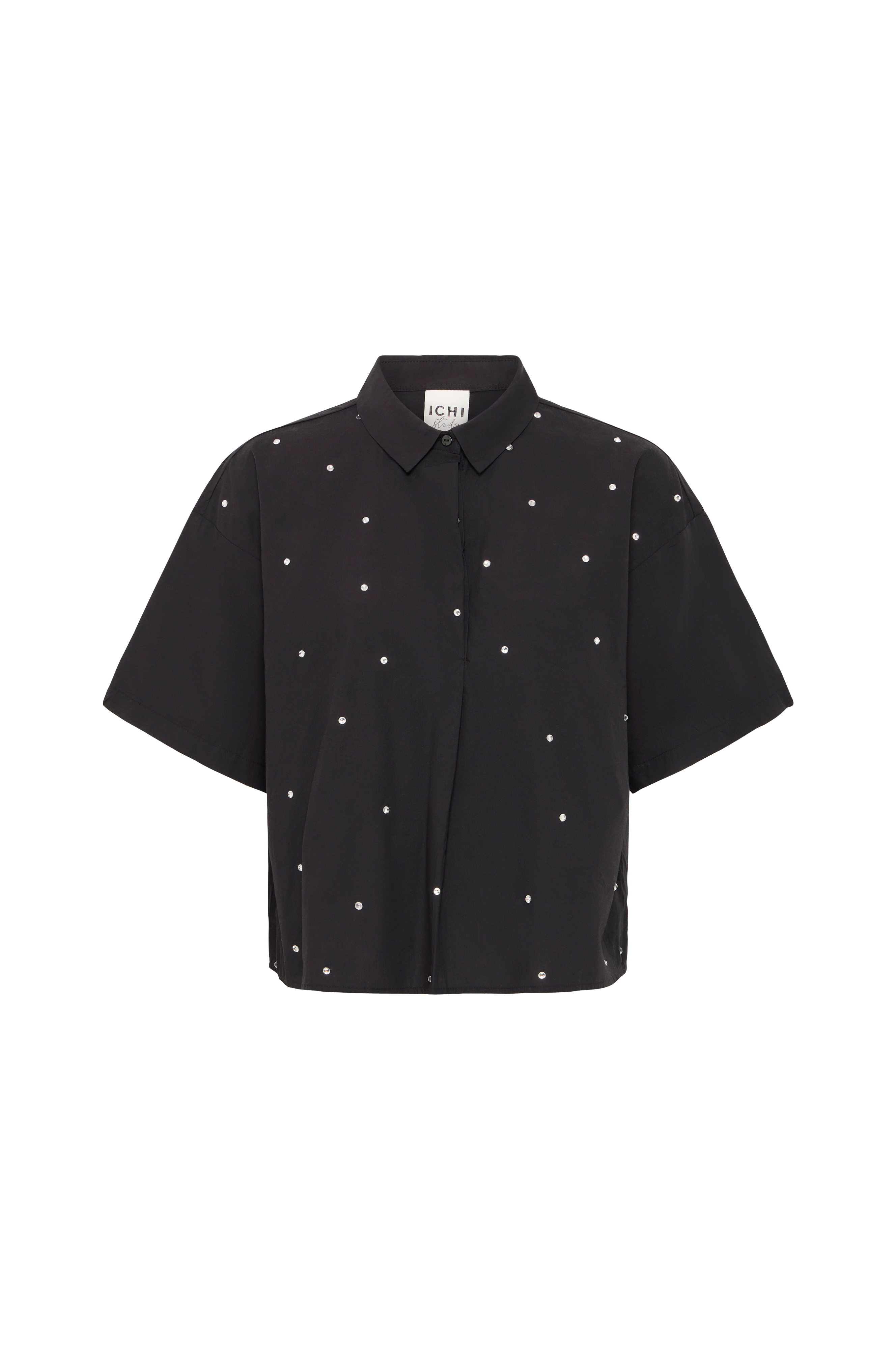 • Kortærmet skjorte med dekorative rhinstene• Halvlang knaplukning foran• Firkantet pasform