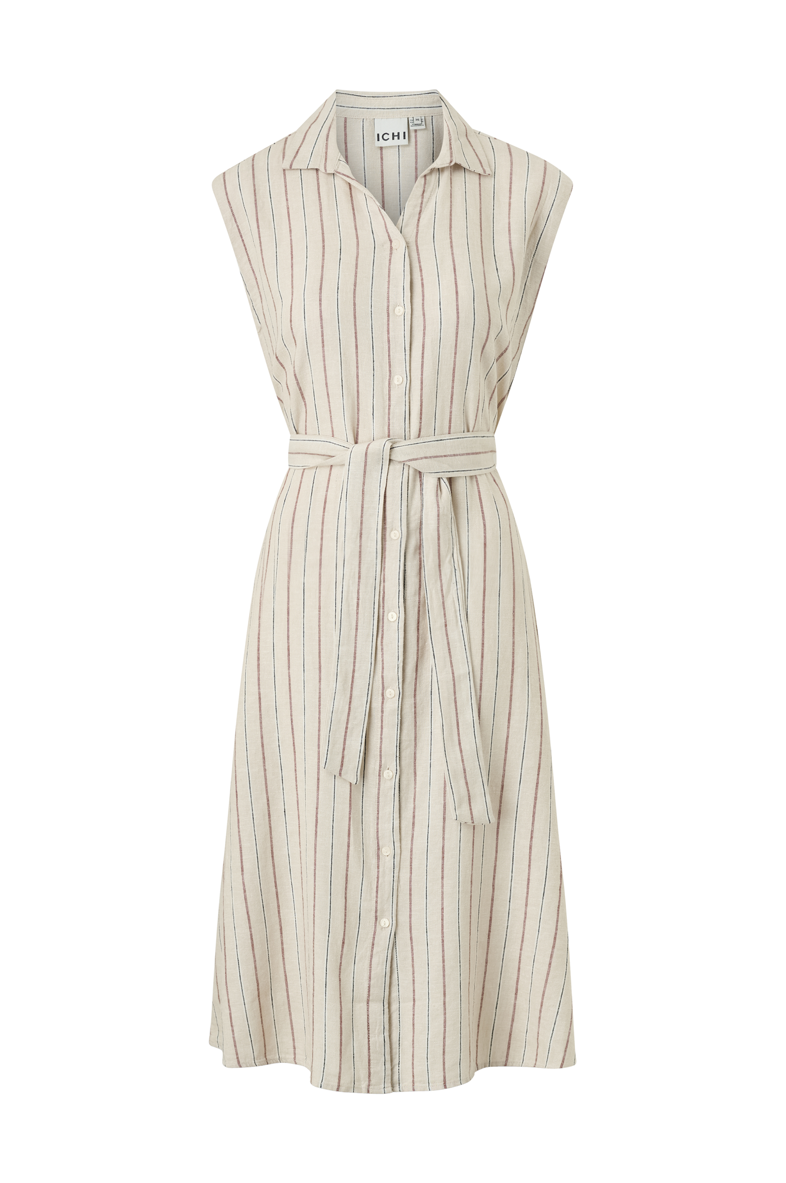 • Ærmeløs skjortekjole i hørblanding• V-formet halsudskæring med krave• Knapper hele vejen frem• Aftageligt bindebælte ved taljen• Længde: 112 cm i størrelse 36