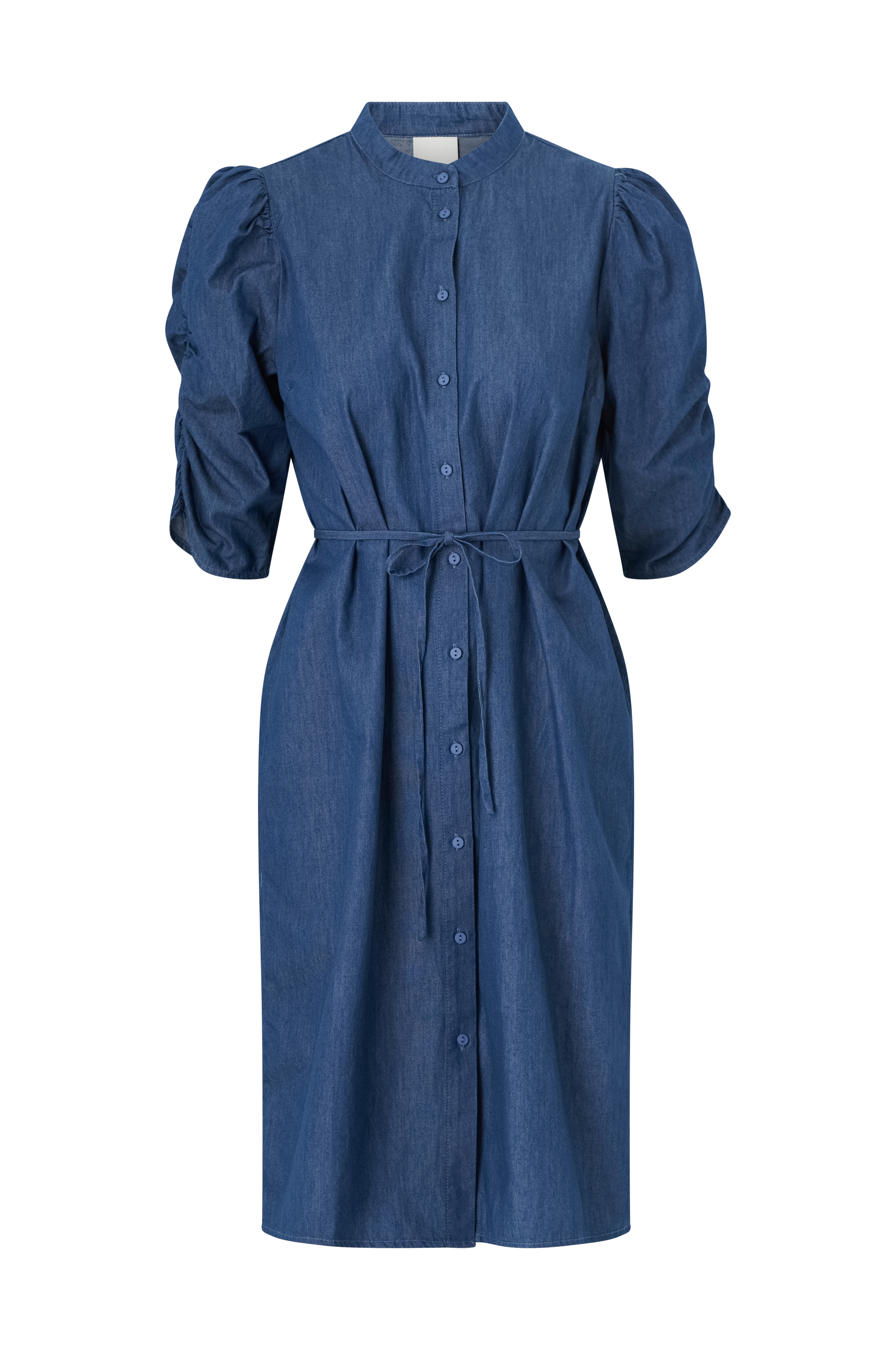 • Lige model med tyndt bindebælte• Rund hals med lille kant• Knapper hele vejen frem• Halvlangt ballonærme med elastisk drapering på ydersiden• Længde: 100 cm i størrelse 36