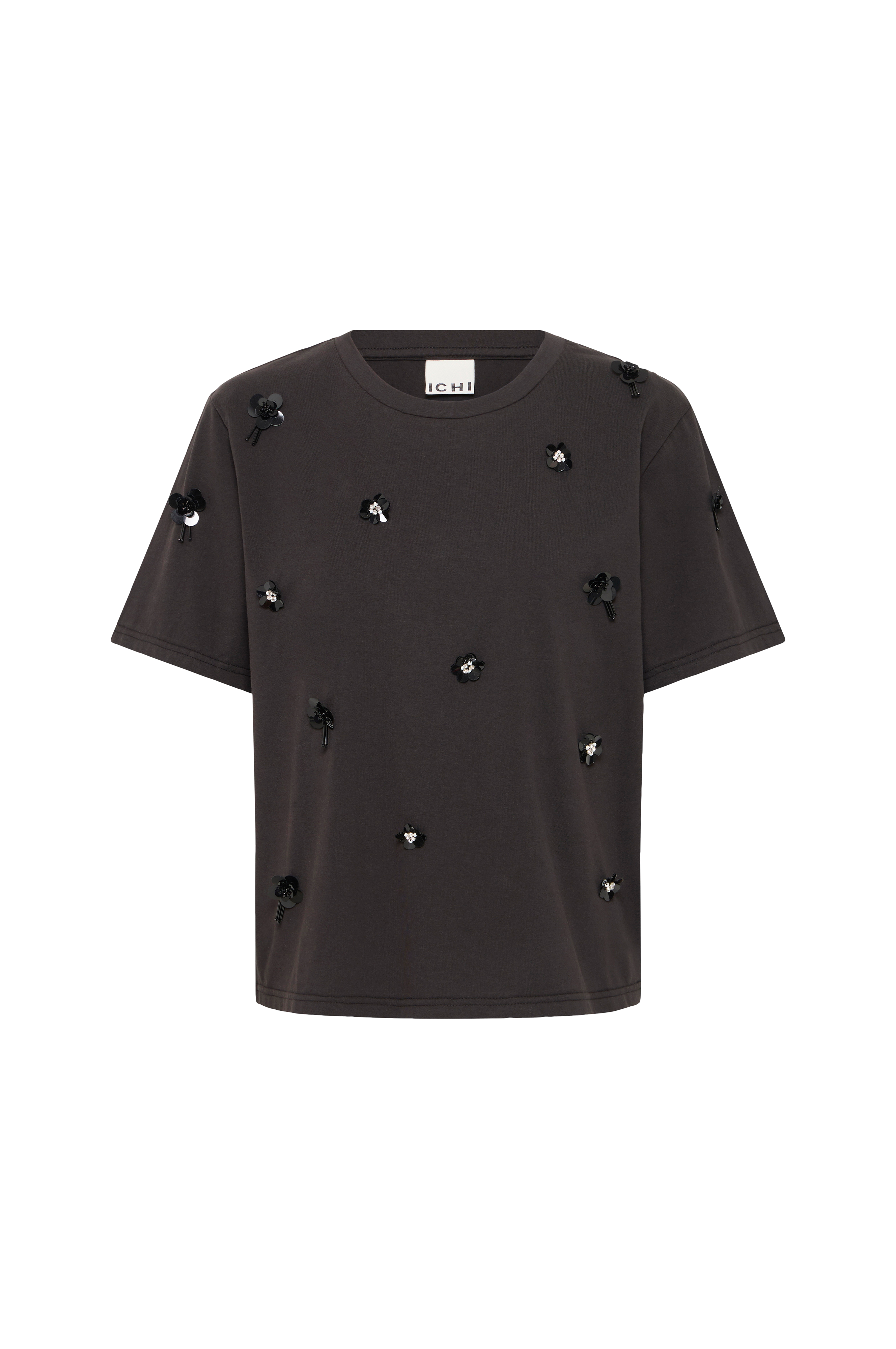 • T-shirt i bomuld• Rund halsudskæring• Blomsterapplikationer med pailleter og perler foran