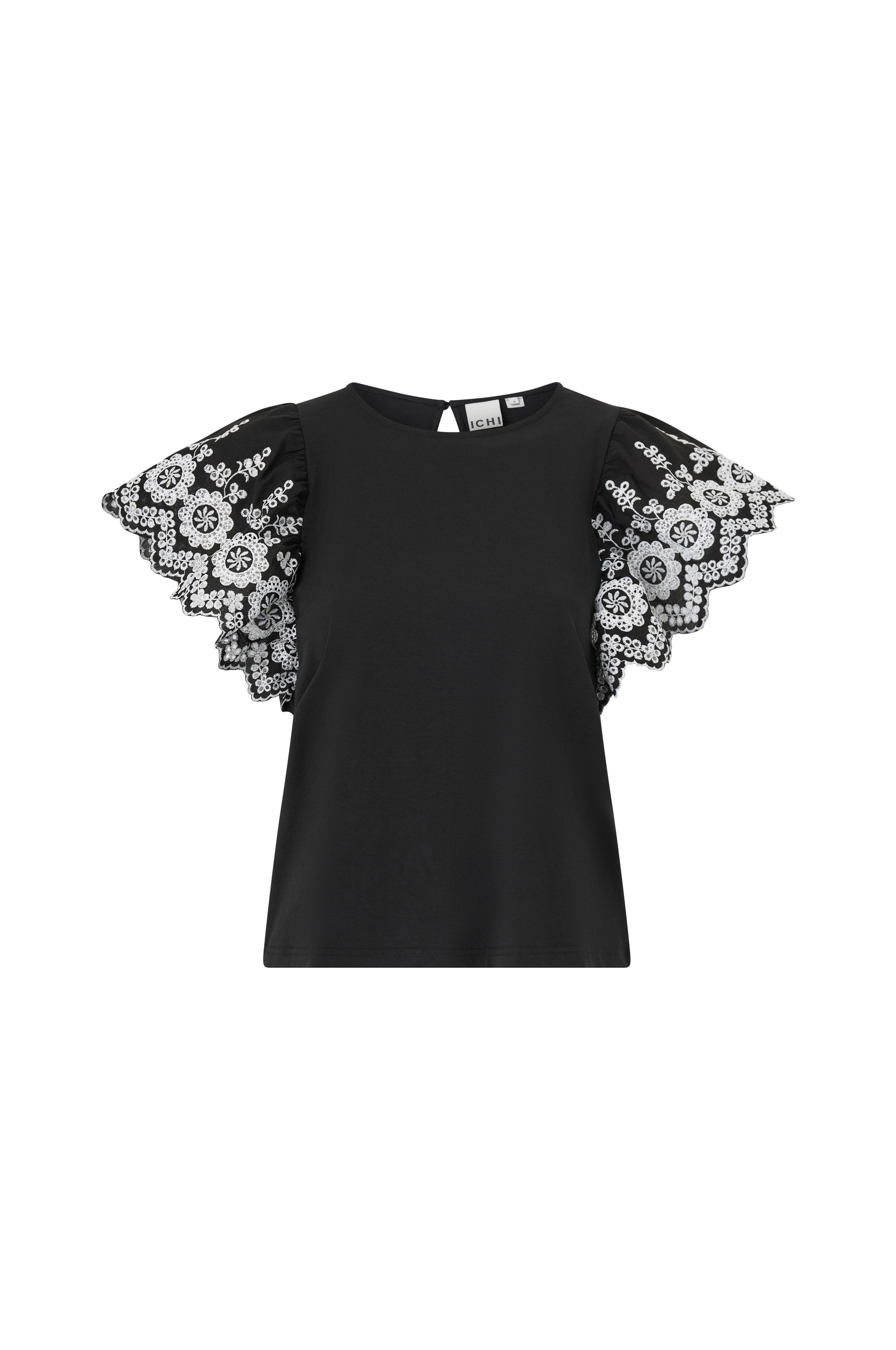 • Model i jersey• Rund hals med knap i nakken• Bredt, vævet ærme med hulbroderier