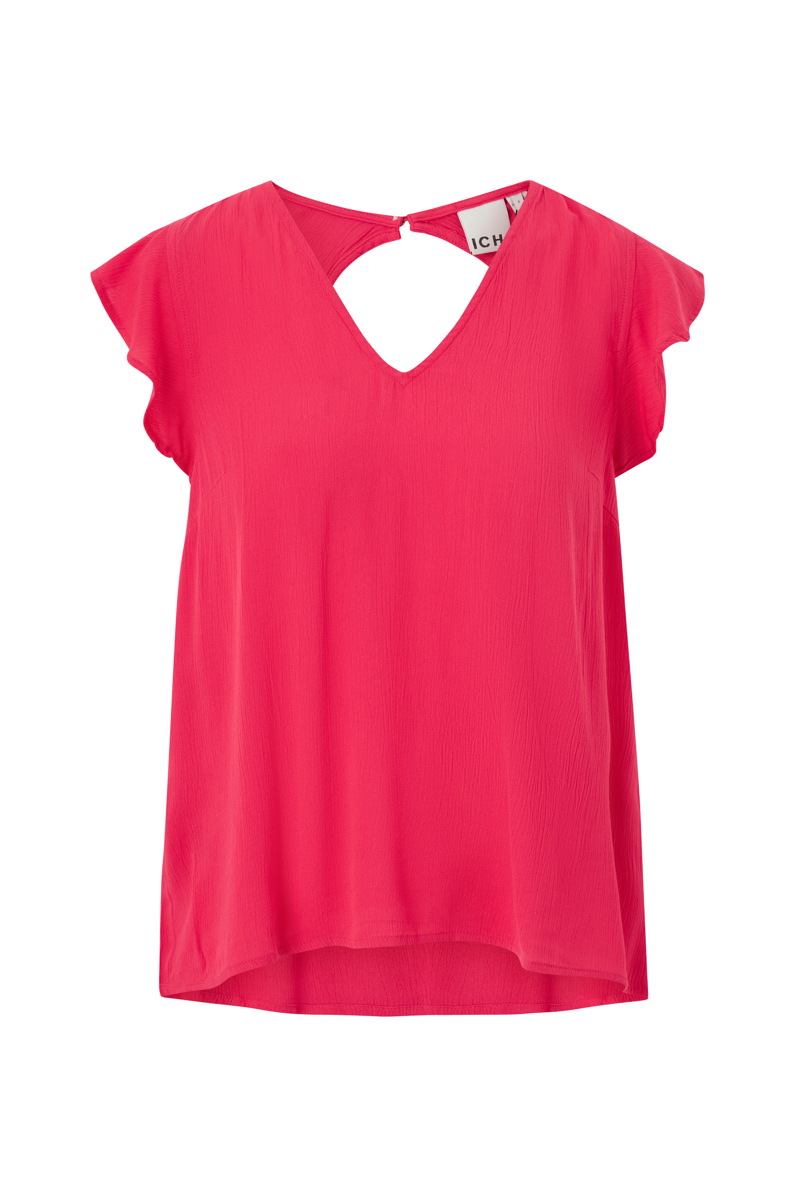 • Let udsvingende model i crepe• V-udskæring i halsen og i nakken med knap oppe bagved• Volant omkring ærmegabene