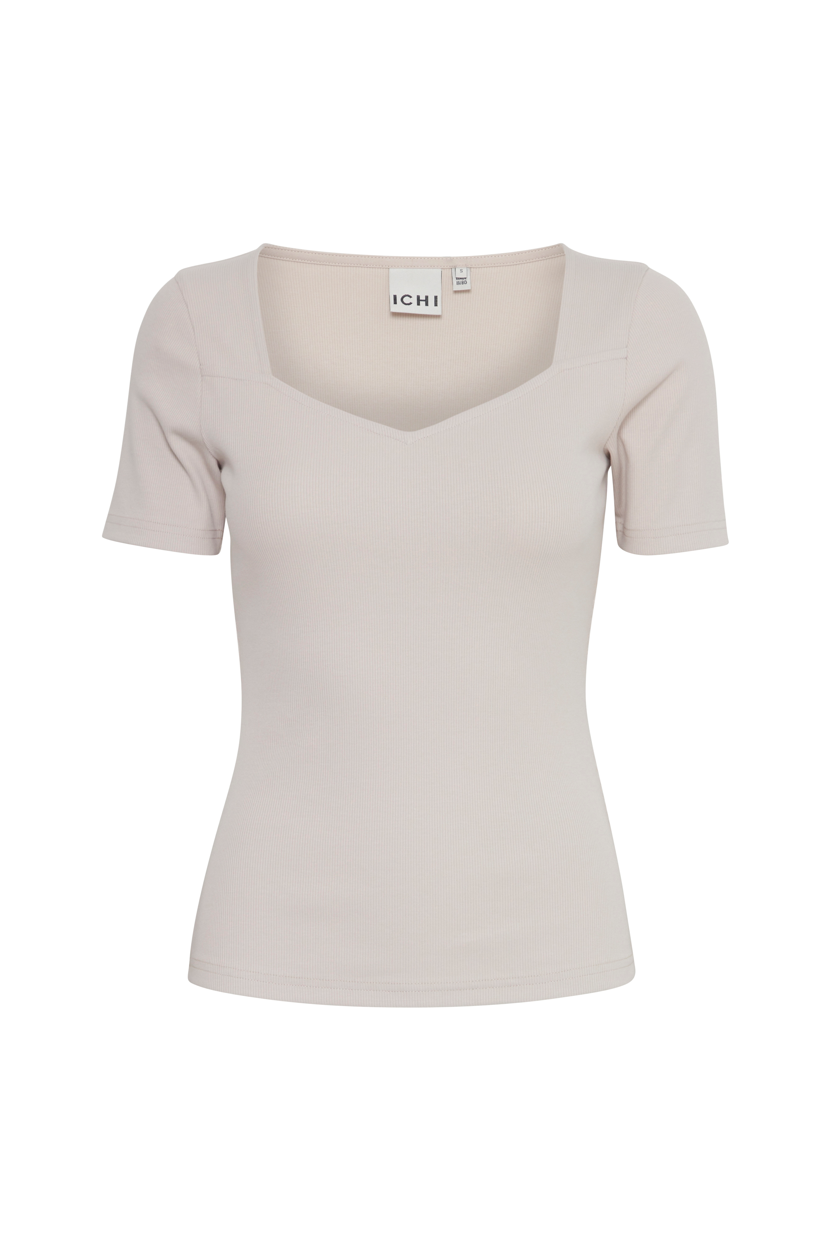 • Ribbet, figursyet top• Kantet halsudskæring• Korte ærmer
