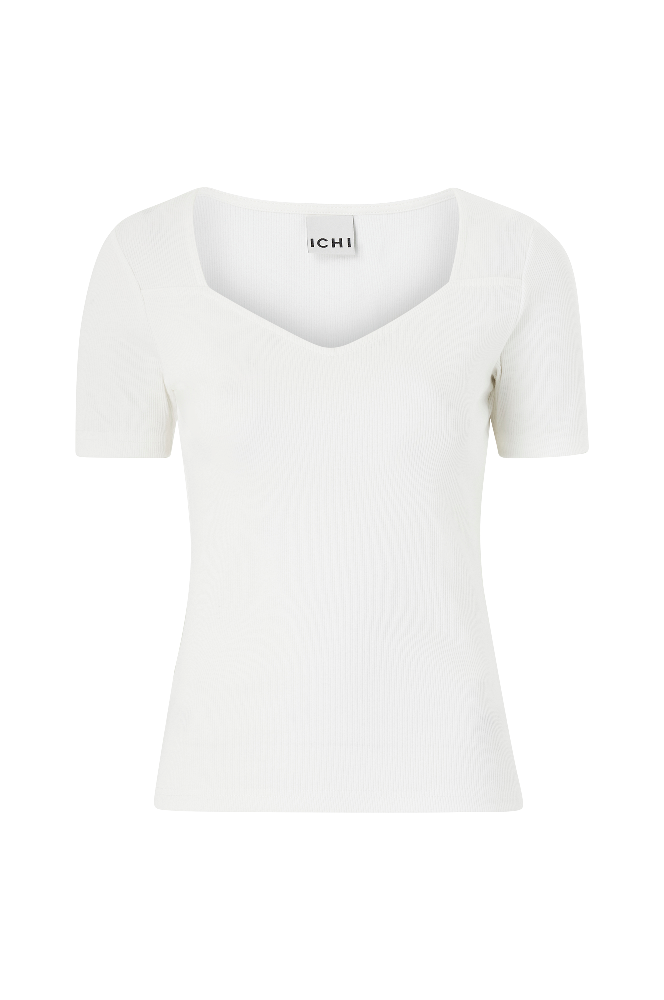 • Ribbet, figursyet top• Kantet halsudskæring• Korte ærmer