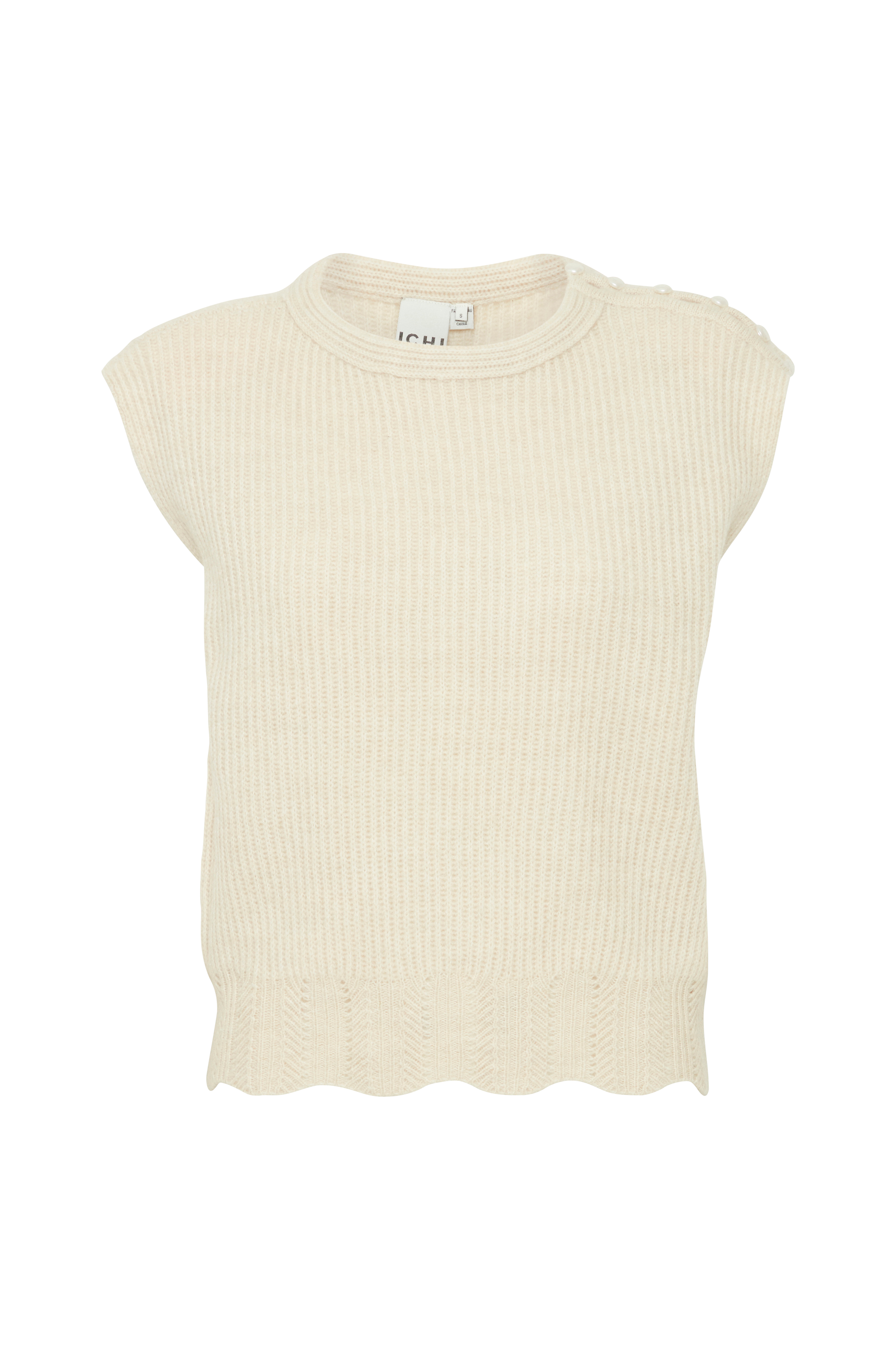 • Ribstrikket oversize model• Rund hals med løkkelukning på en skulder• Mønsterstrikket kant nederst