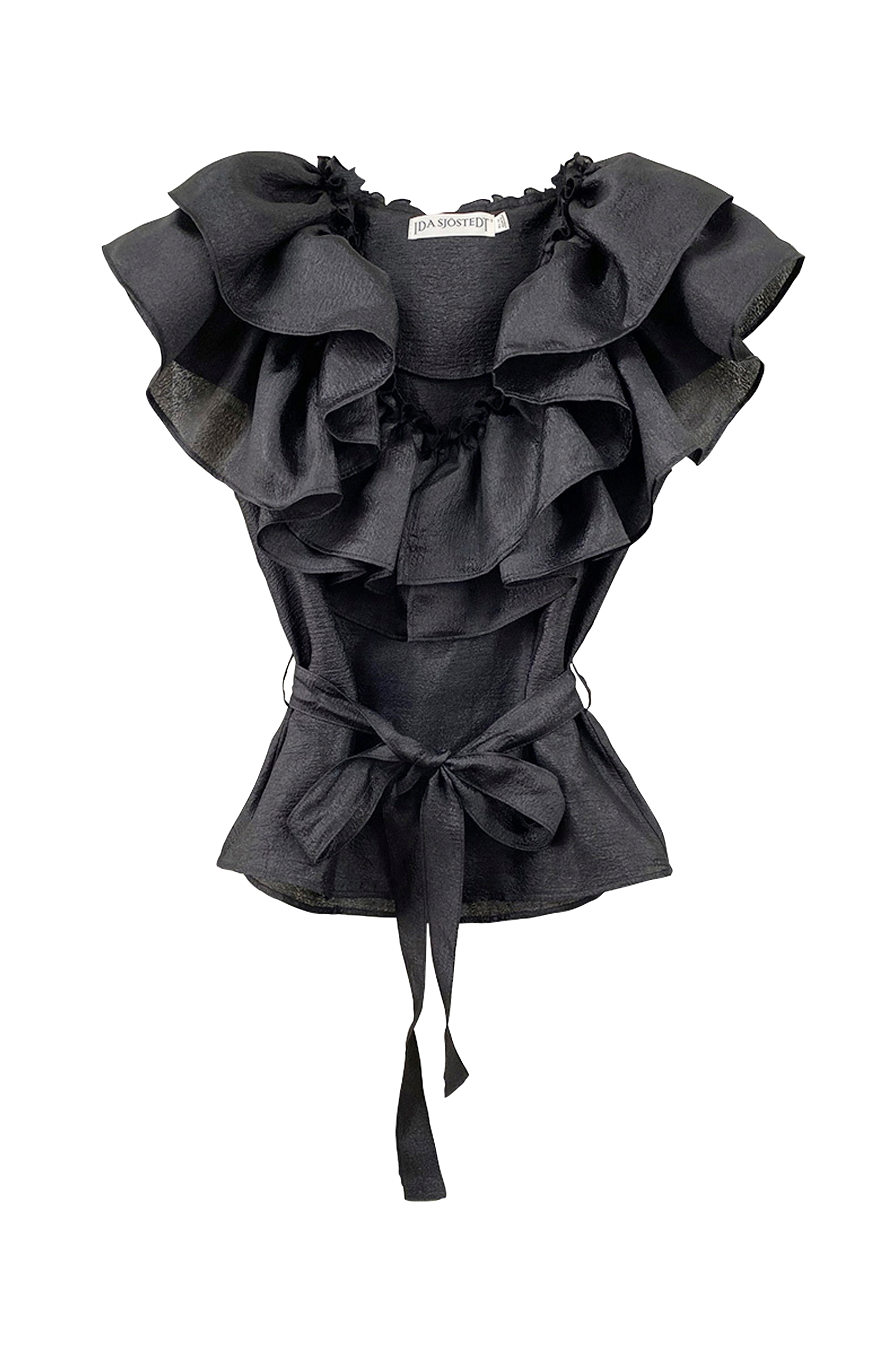 • Dyb halsudskæring med dobbelte volanter hele vejen rundt